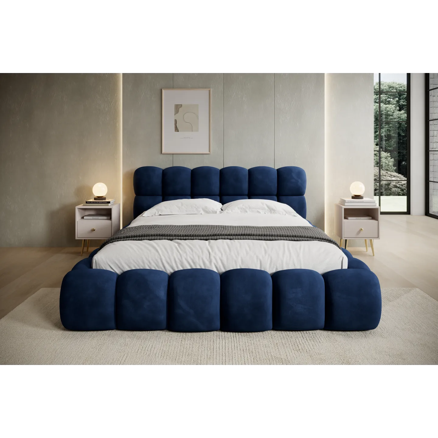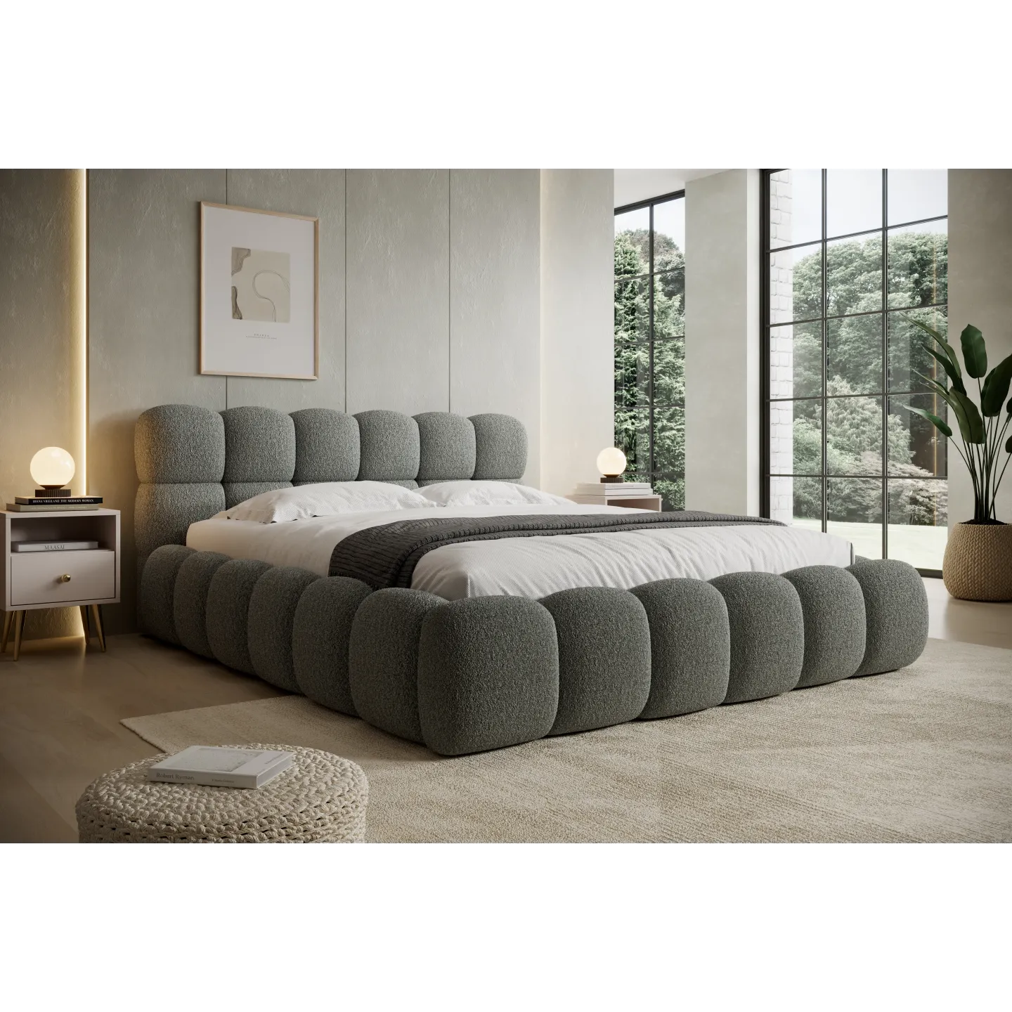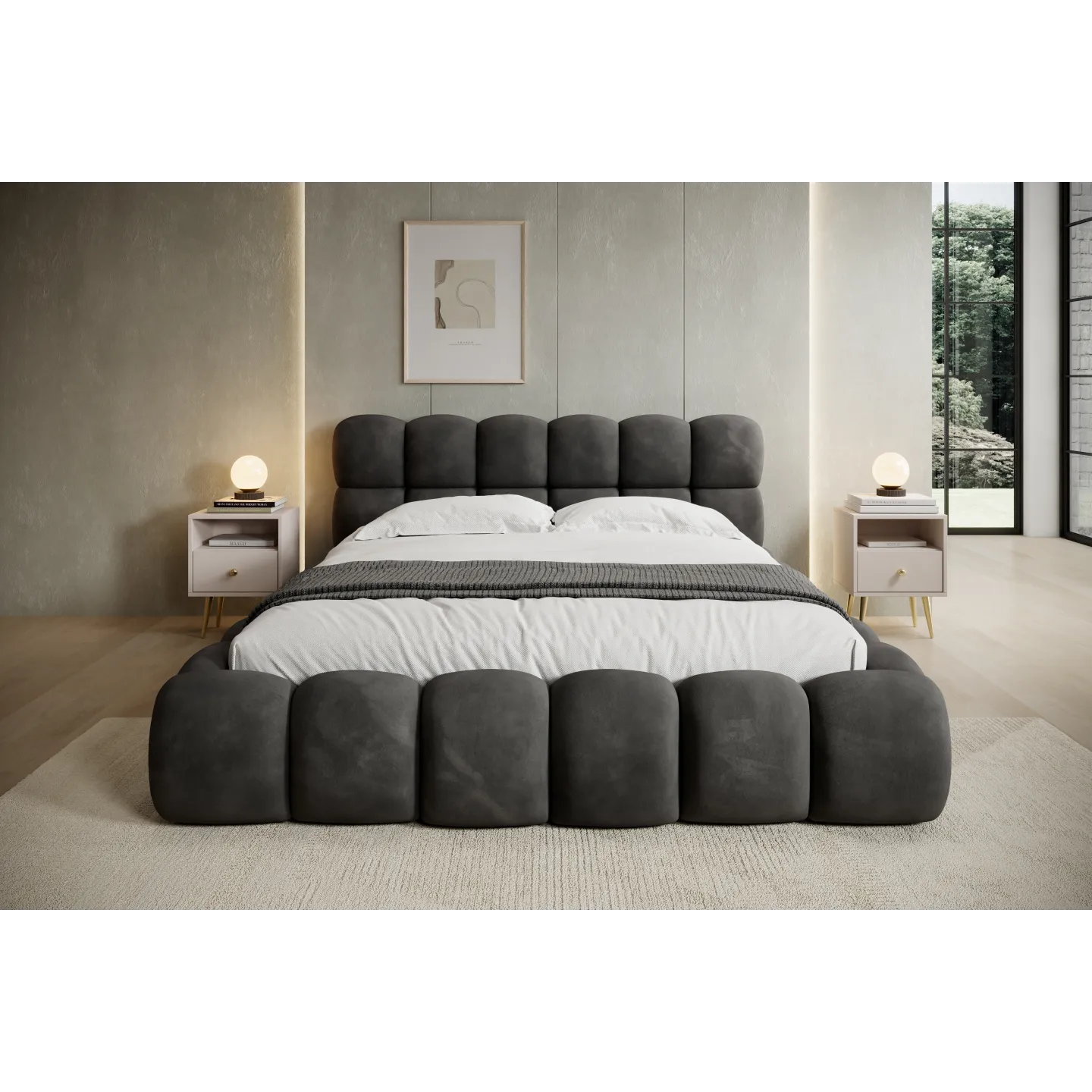 NIUVIO ist als exklusives Designer-Boxspringbett konzipiert, das Optik und Funktion intelligent verbindet. Der im Lieferumfang enthaltene Boxspring-Matratzenteil, der große Stauraum im Bettkasten und die markante „Bubble“-Optik machen es zu einer langfristigen Investition in Schlafkomfort und Wohnästhetik.