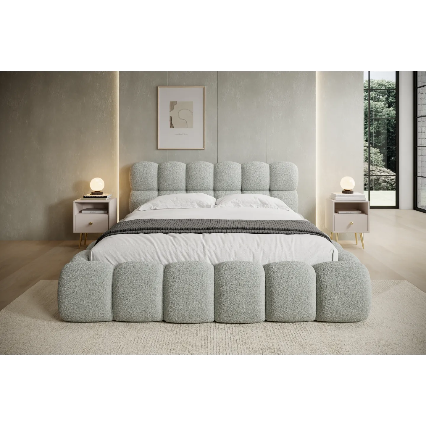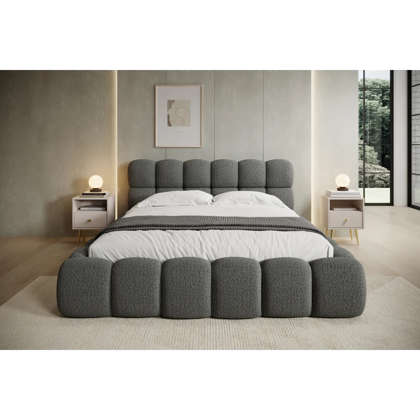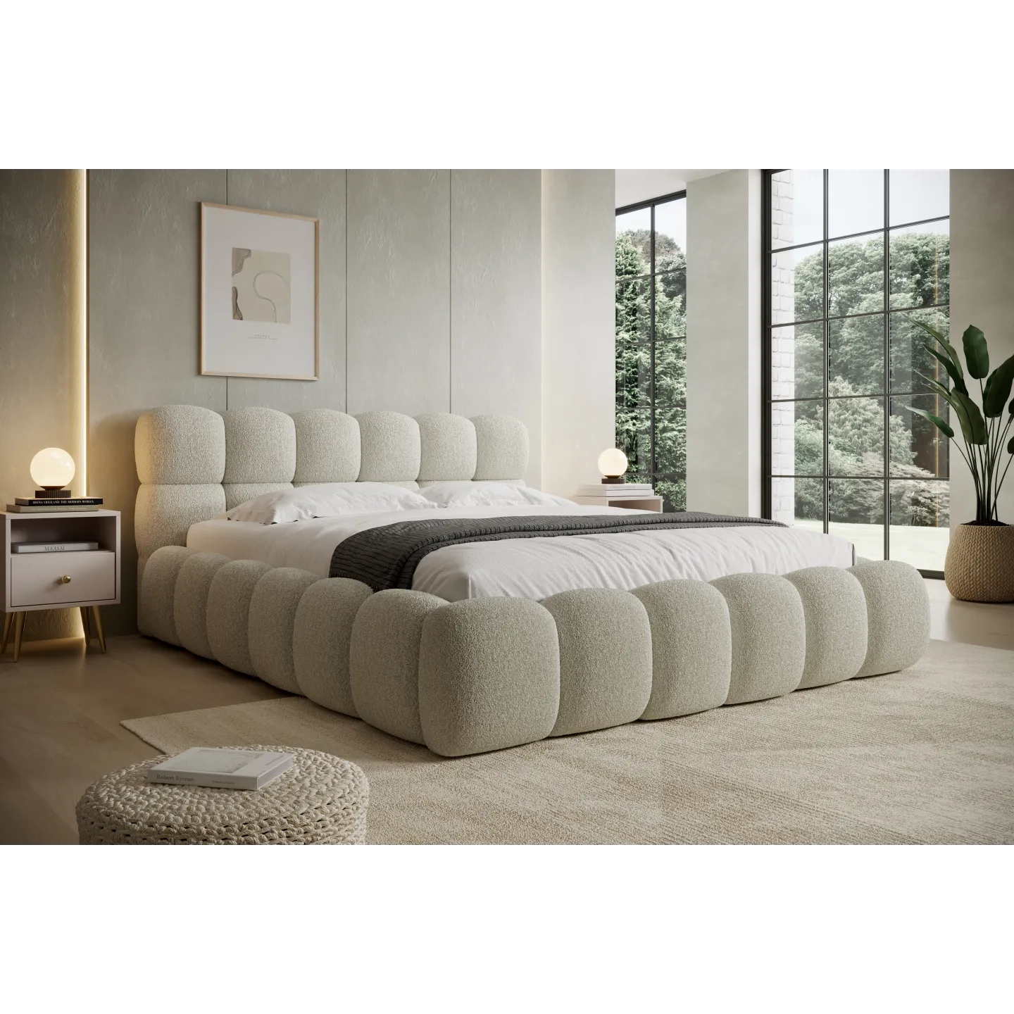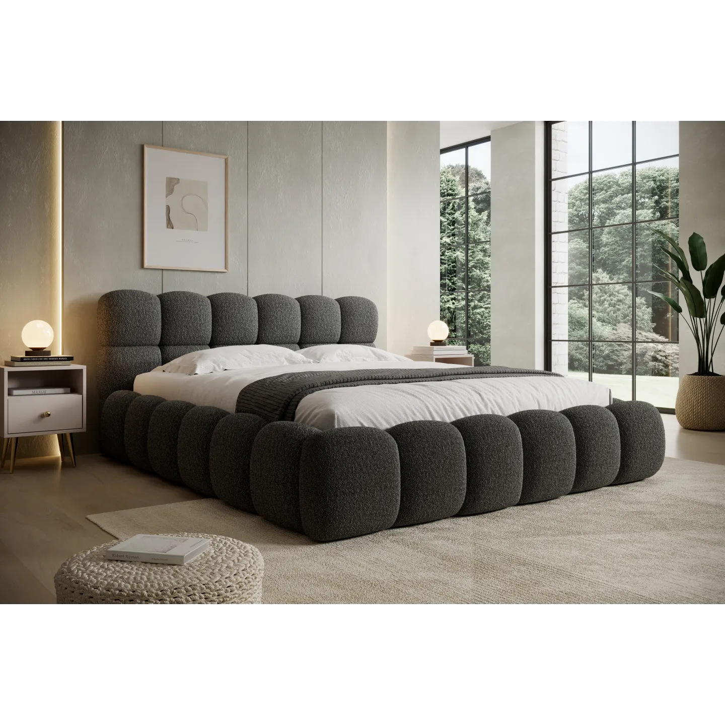 NIUVIO ist als exklusives Designer-Boxspringbett konzipiert, das Optik und Funktion intelligent verbindet. Der im Lieferumfang enthaltene Boxspring-Matratzenteil, der große Stauraum im Bettkasten und die markante „Bubble“-Optik machen es zu einer langfristigen Investition in Schlafkomfort und Wohnästhetik.
