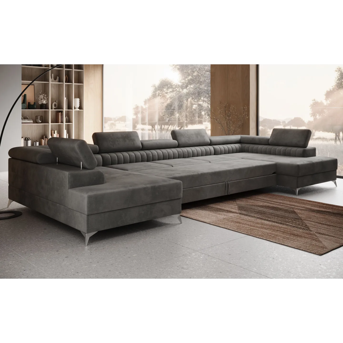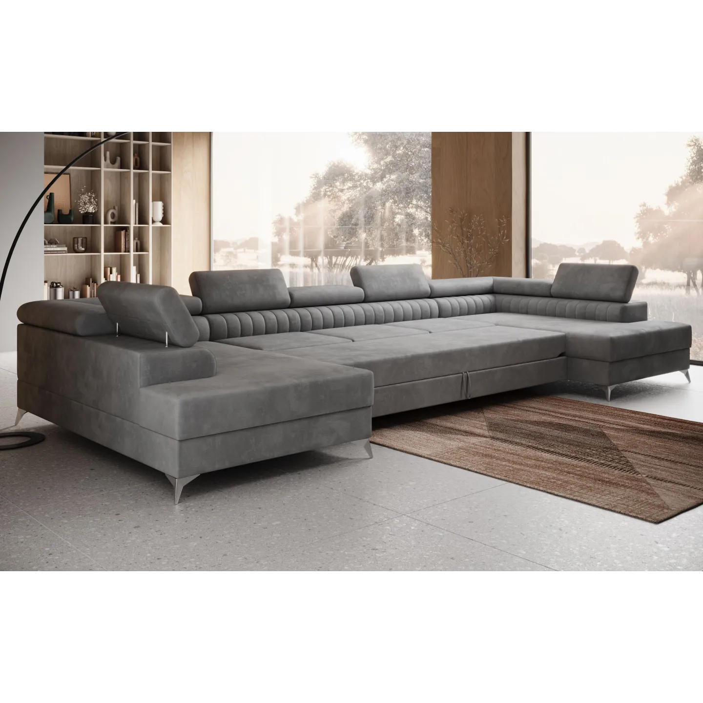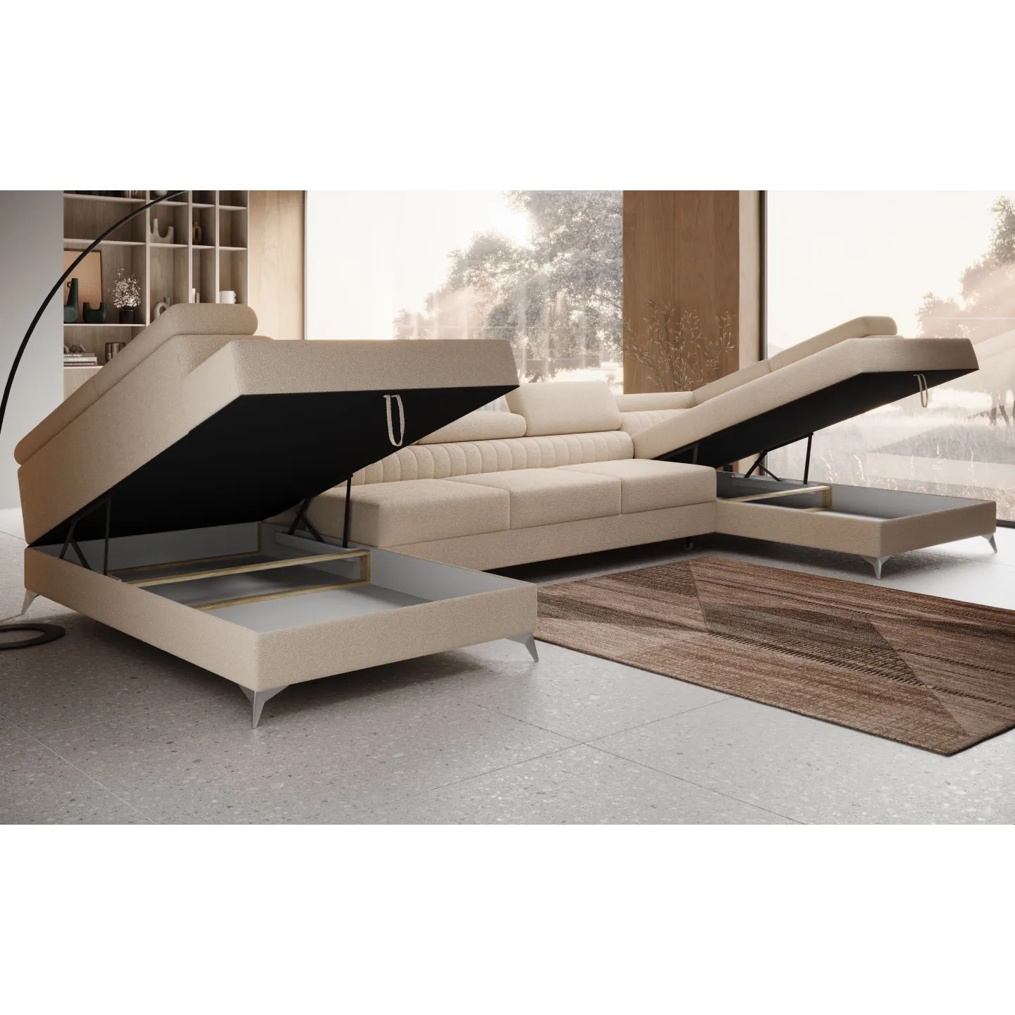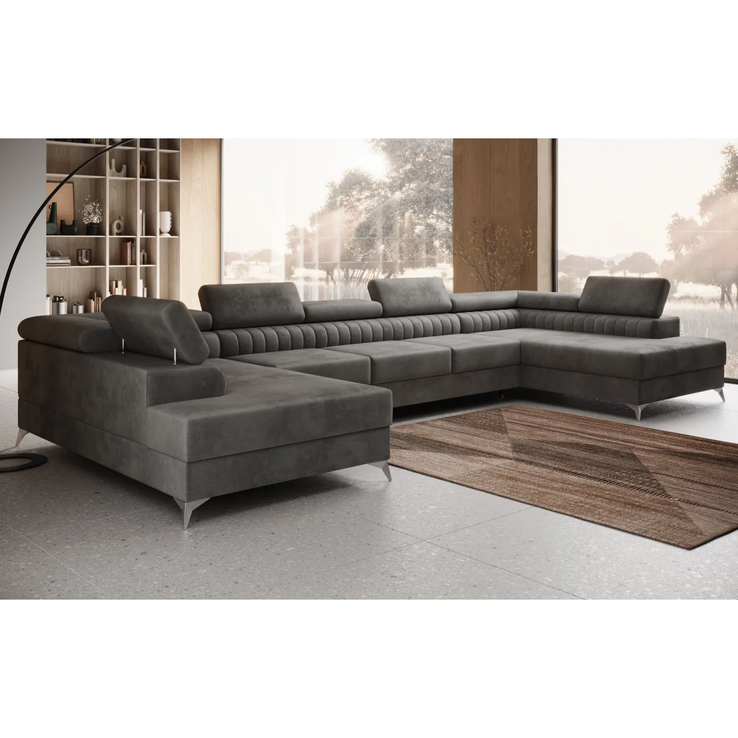 Einführung Schlafsofa FERMO mit Bettkasten U-Form ist eine moderne, großzügige Wohnlandschaft in U-Form, die als vollwertiges Bett für den täglichen Schlaf konzipiert wurde. Dieses elegante Möbelstück bildet das visuelle Zentrum Ihres Wohnzimmers und vereint stilvolles Design mit der Funktion eines komfortablen schlafsofa mit bettkasten für höchste Ansprüche.