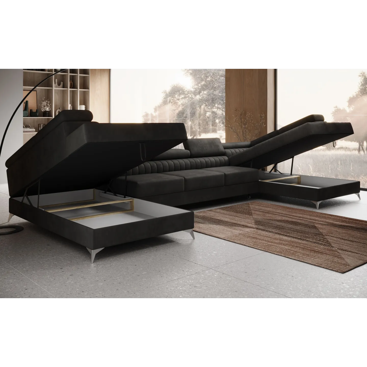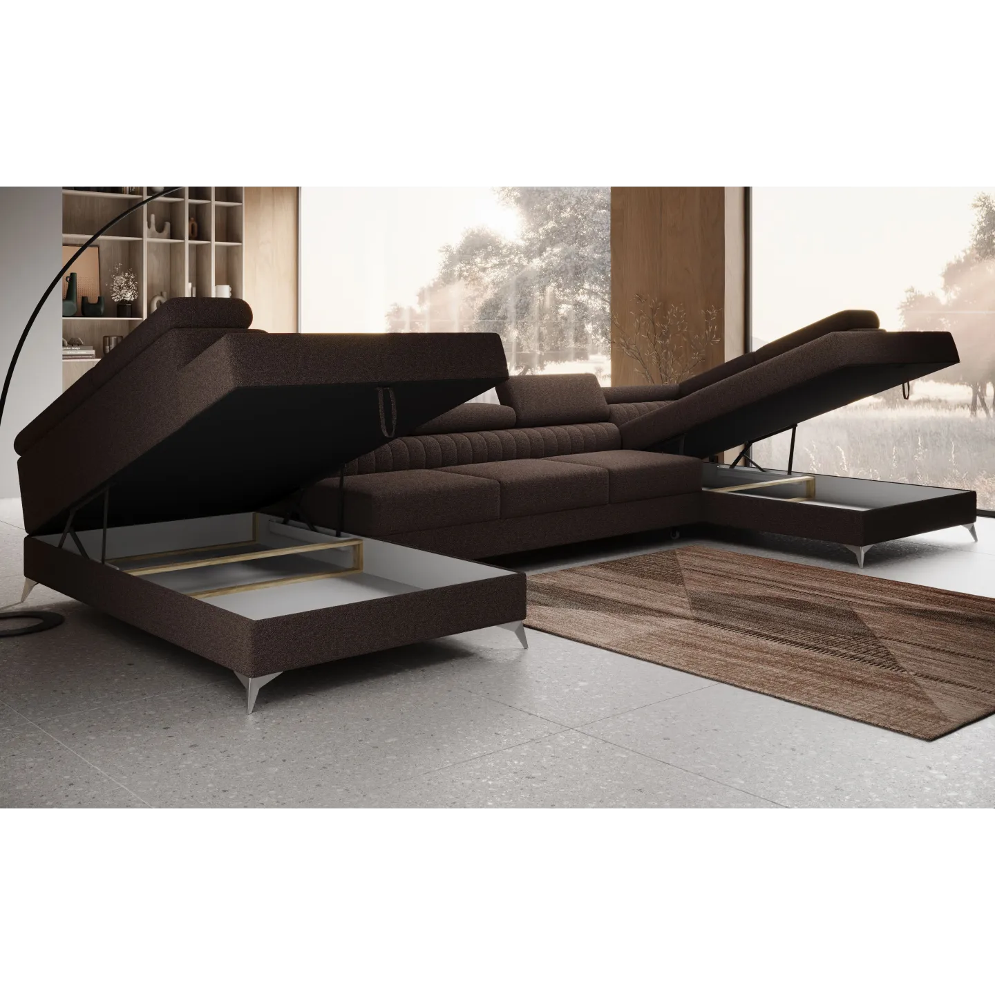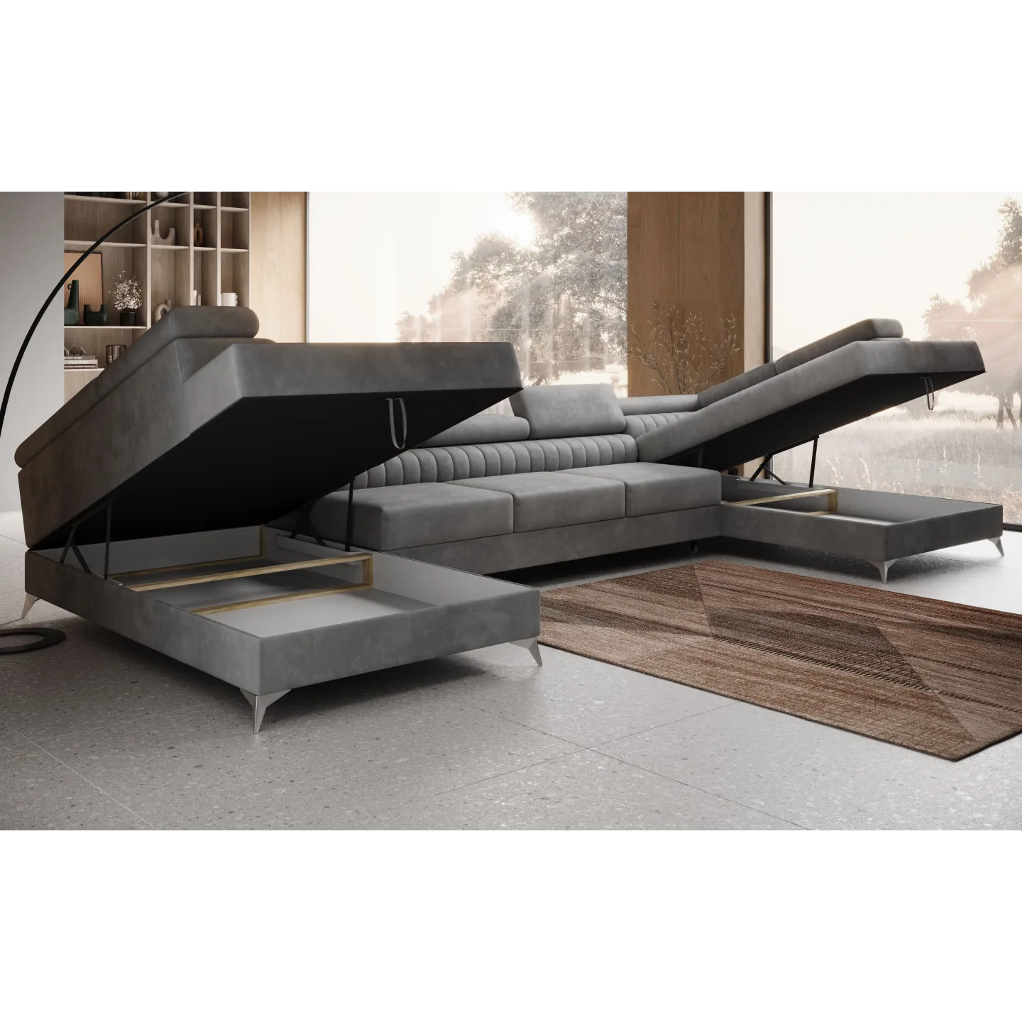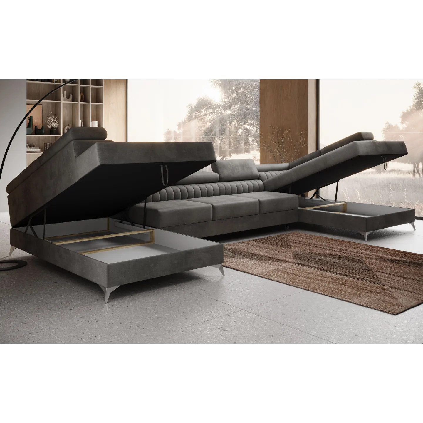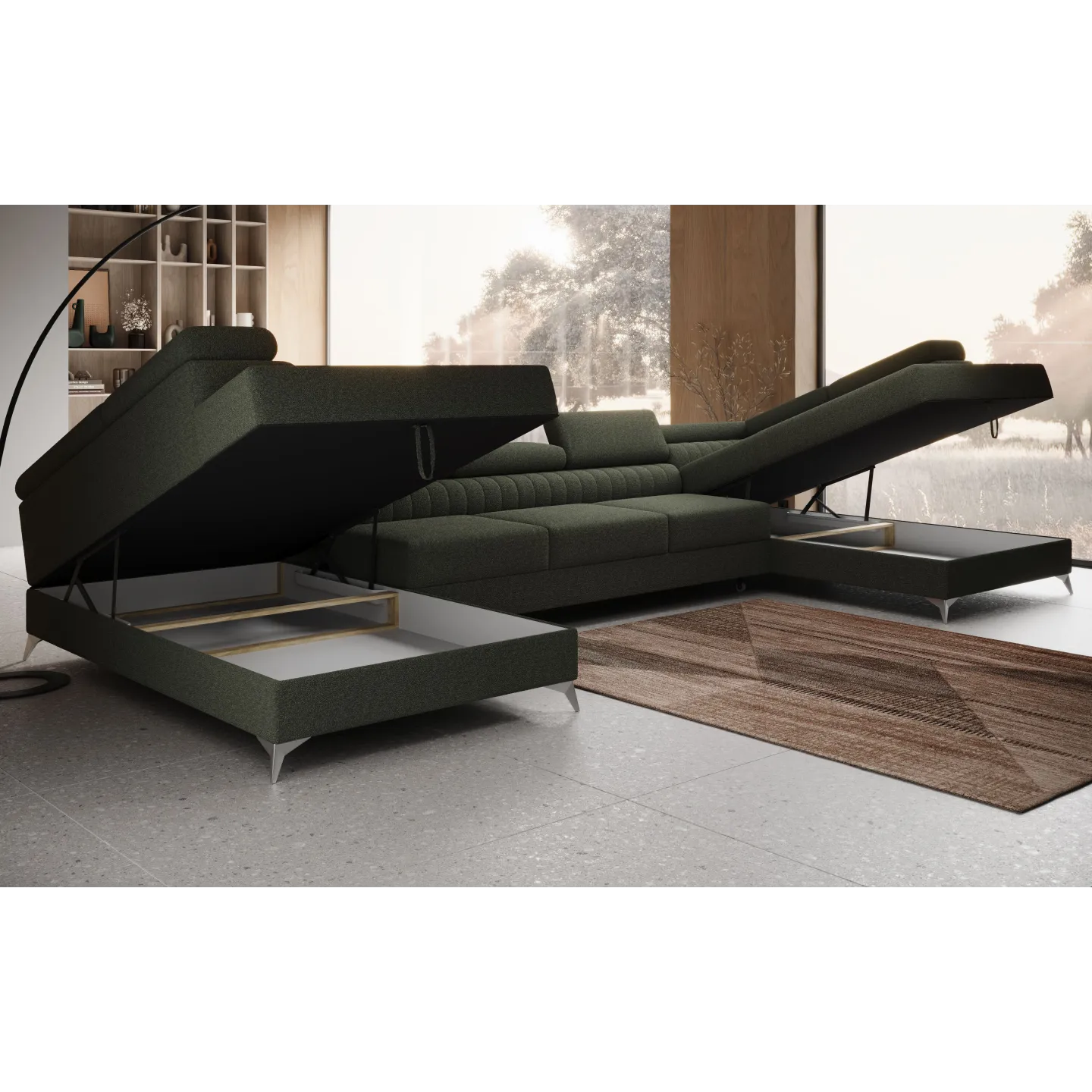 Einführung Schlafsofa FERMO mit Bettkasten U-Form ist eine moderne, großzügige Wohnlandschaft in U-Form, die als vollwertiges Bett für den täglichen Schlaf konzipiert wurde. Dieses elegante Möbelstück bildet das visuelle Zentrum Ihres Wohnzimmers und vereint stilvolles Design mit der Funktion eines komfortablen schlafsofa mit bettkasten für höchste Ansprüche.