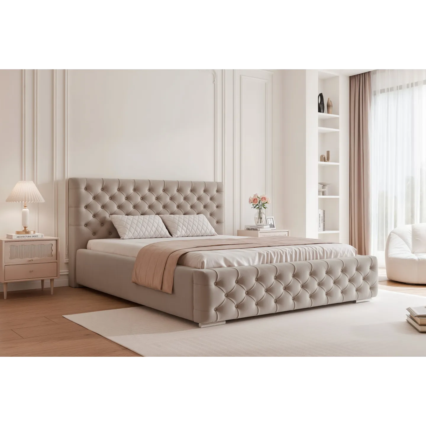 Einführung Das Polsterbett VERO ist ein elegantes Doppelbett mit gepolstertem, chesterfield-gestepp tem Kopfteil und praktischem Bettkasten über die gesamte Liegefläche. Das stilvolle Design mit Samtoptik, 32‑Latten-Rahmen und komfortabler Polsterung sorgt für ein luxuriöses Schlafgefühl und eine moderne, hotelähnliche Atmosphäre im Schlafzimmer.