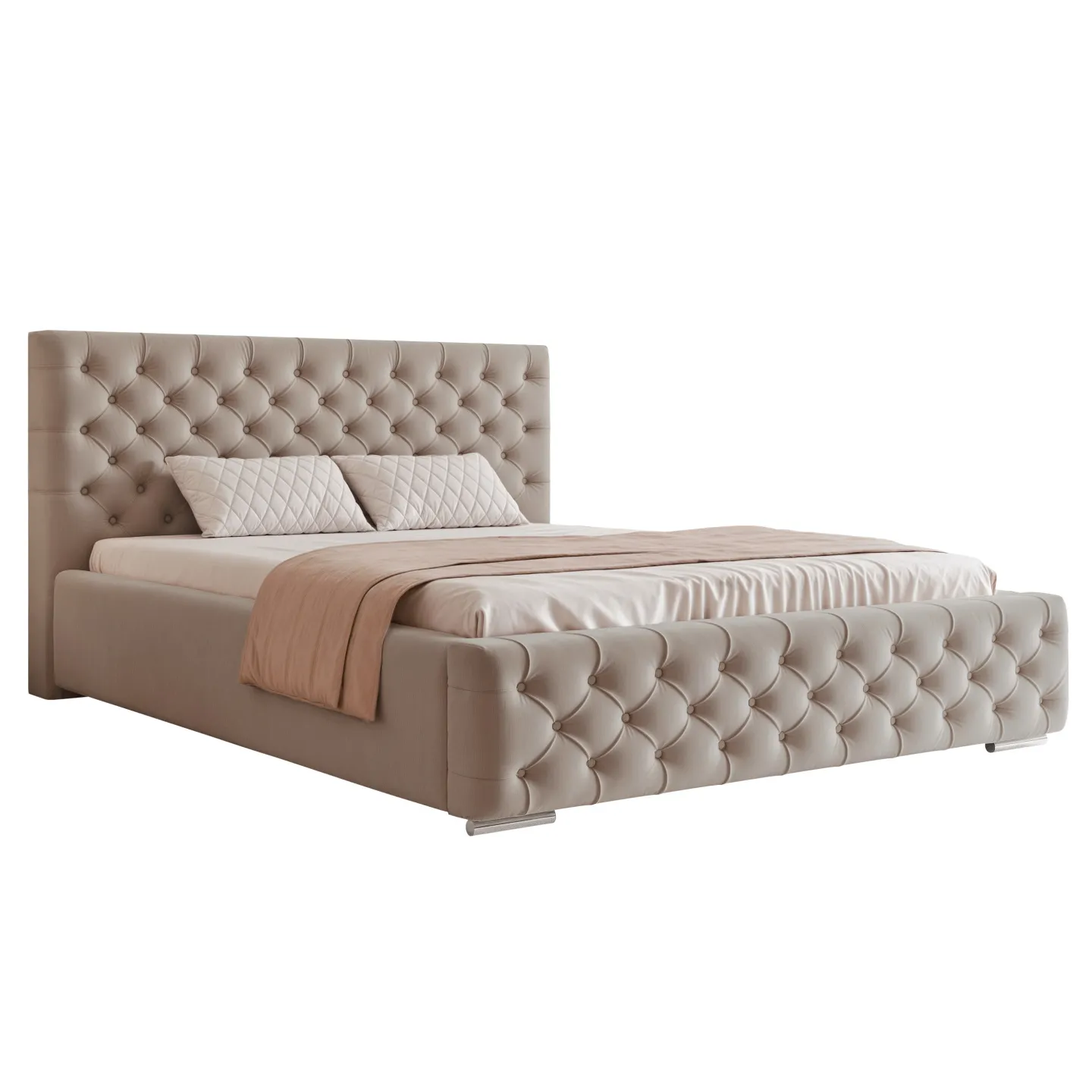 Das Polsterbett VERO überzeugt durch seine hochwertige Optik, den durchdachten Stauraum im Bettkasten und die komfortable Lattenrost-Konstruktion. Die verchromten Füße mit 2,5 cm Höhe verleihen dem Doppelbett eine moderne, leichte Ausstrahlung und erleichtern zugleich die Reinigung des Bodens unter dem Bett.