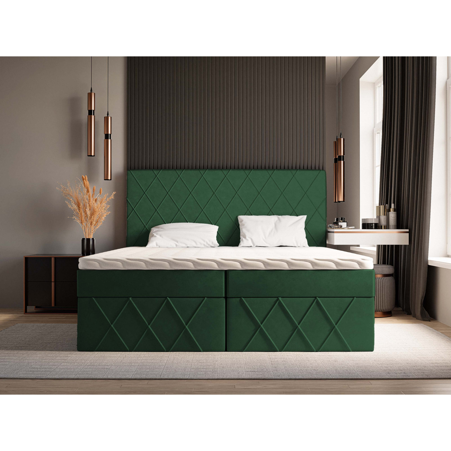 Das Boxspringbett MOLLY bietet höchsten Schlafkomfort und modernes Design. Mit einem gepolsterten Kopfteil, einer Bonellfederkernmatratze und praktischen Bettkästen ist es die ideale Wahl für ein stilvolles und funktionales Schlafzimmer.