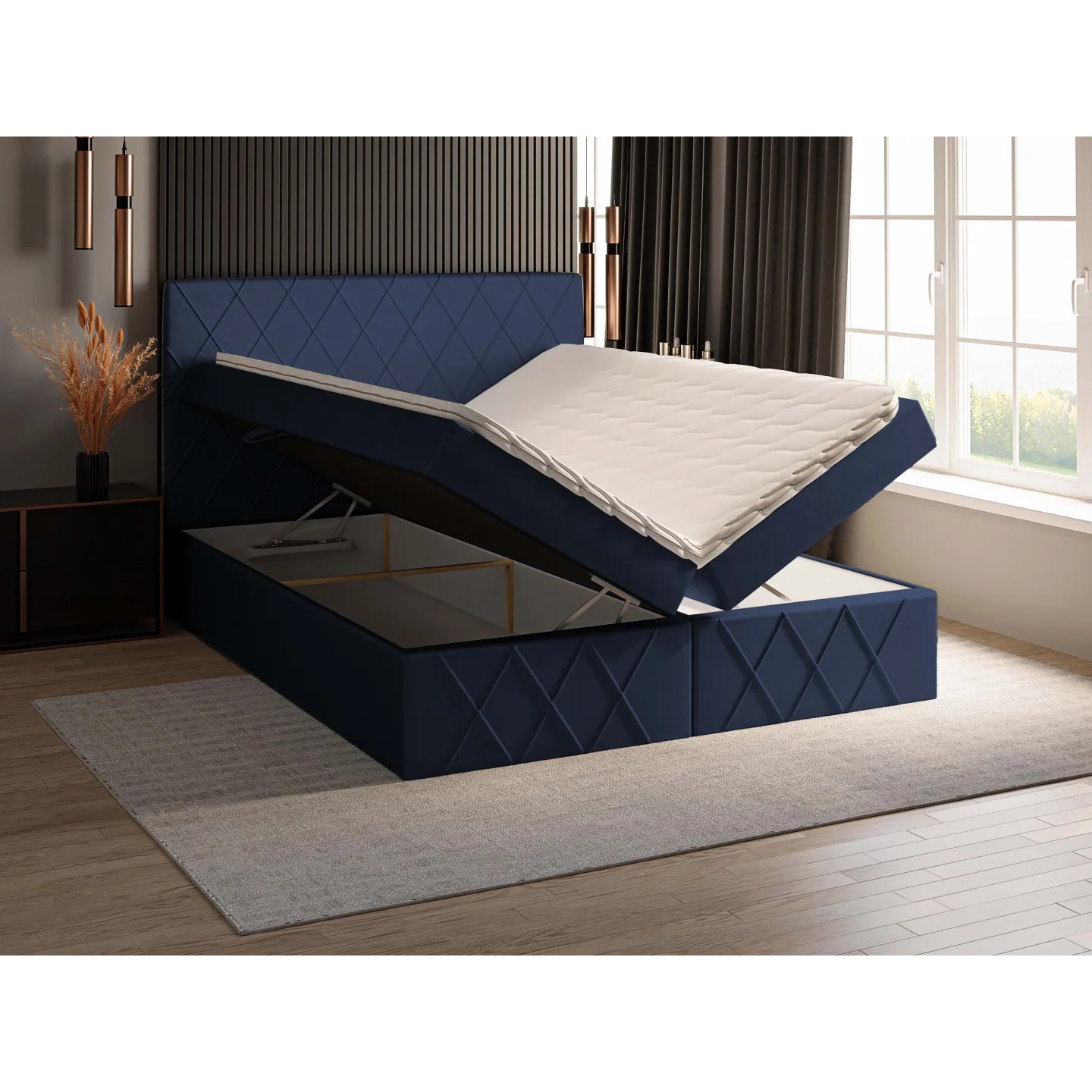 Das Boxspringbett MOLLY bietet höchsten Schlafkomfort und modernes Design. Mit einem gepolsterten Kopfteil, einer Bonellfederkernmatratze und praktischen Bettkästen ist es die ideale Wahl für ein stilvolles und funktionales Schlafzimmer.