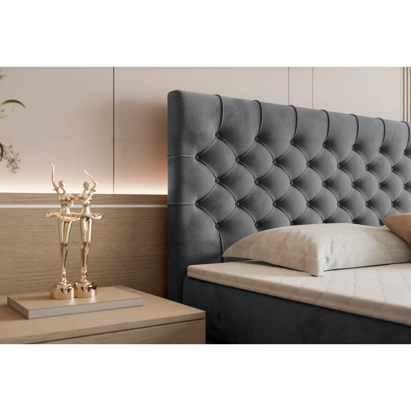 • Elegantes Chesterfield-Steppmuster: Verleiht dem Bett eine luxuriöse Note.