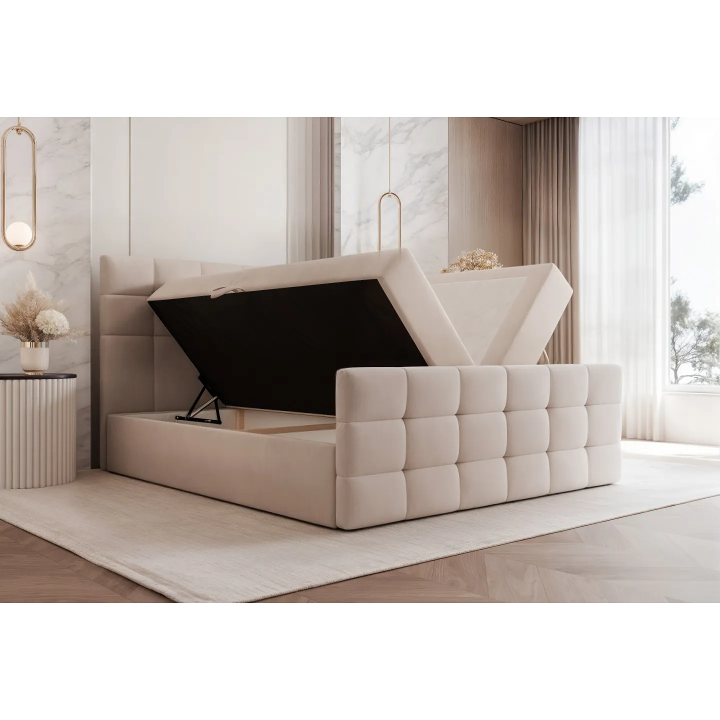 • Modell: Boxspringbett / Polsterbett mit Stauraum.