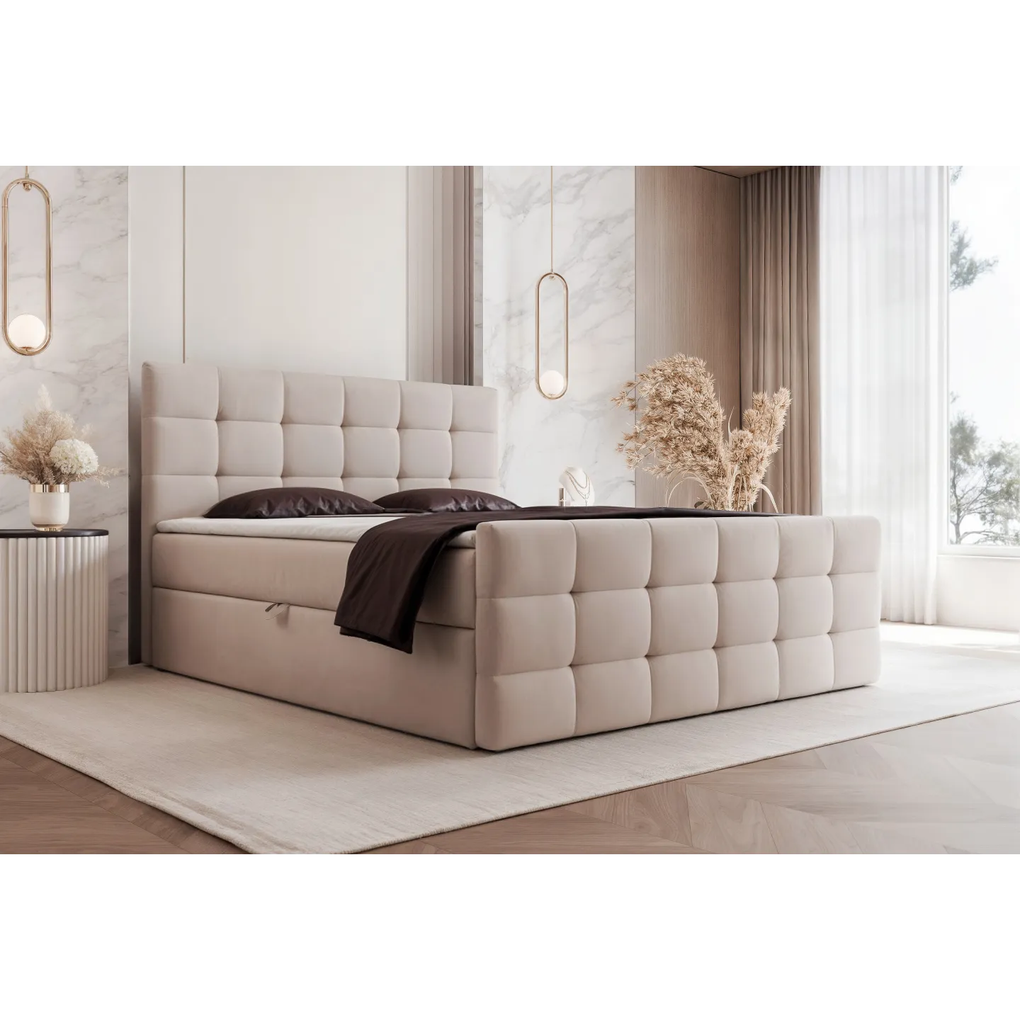 • Modernes Boxspringbett mit klaren, geraden Linien und elegantem Erscheinungsbild – passend zu vielen Einrichtungsstilen.
