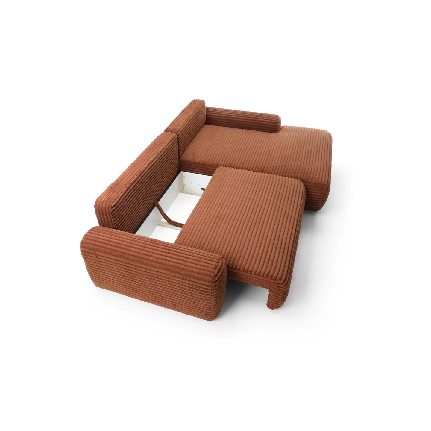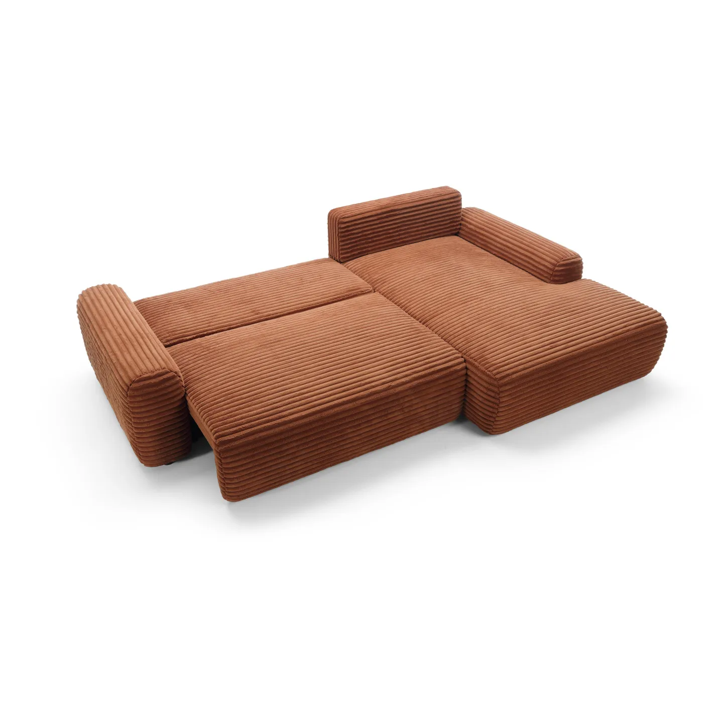Ecksofa MOUNIR – Corddesign mit Schlaffunktion & Wellenunterfederung