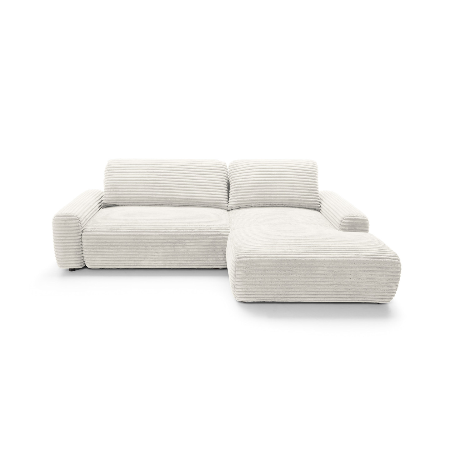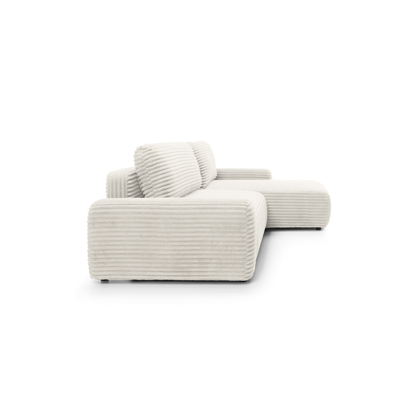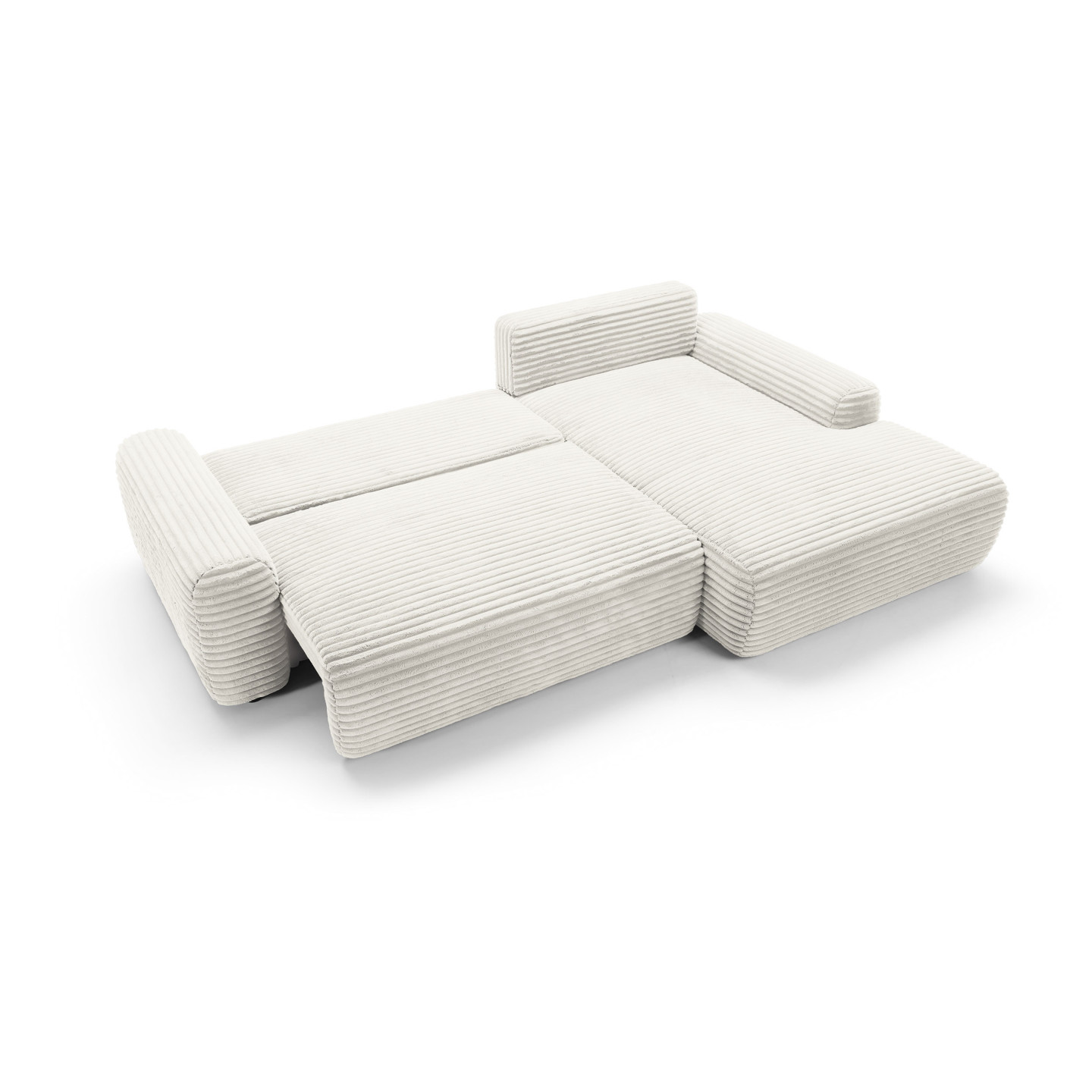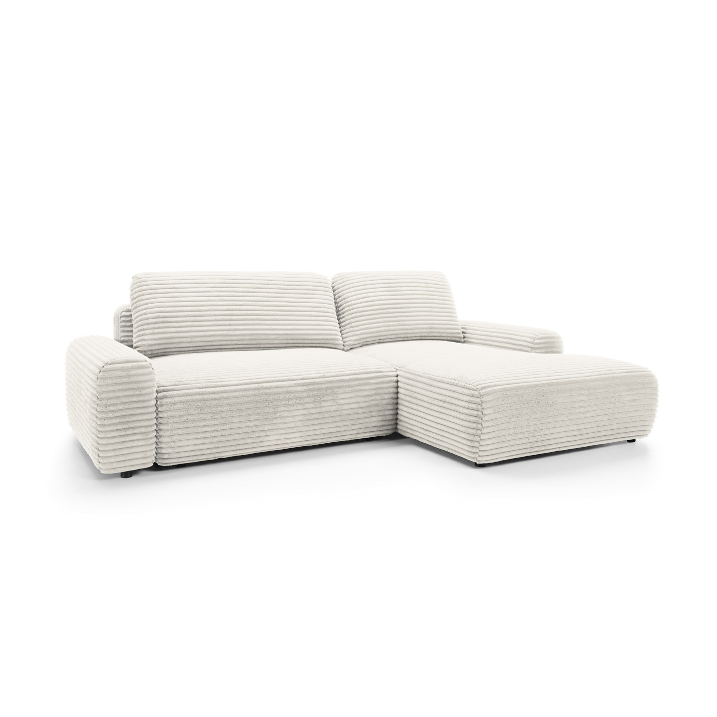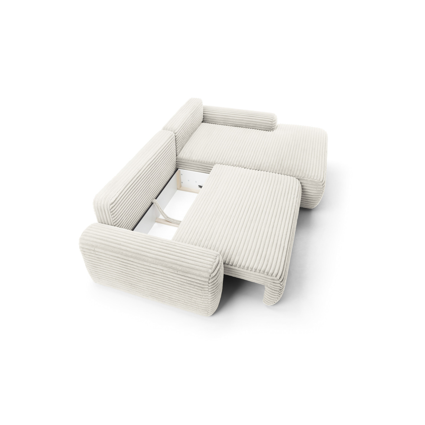 MOUNIR ist ein Cord Ecksofa für alle, die Komfort, Stil und Alltagstauglichkeit suchen. Die Kombination aus Schlaffunktion, Bettkasten und Wellenunterfederung macht es zum vielseitigen Mittelpunkt Ihres Wohnzimmers.