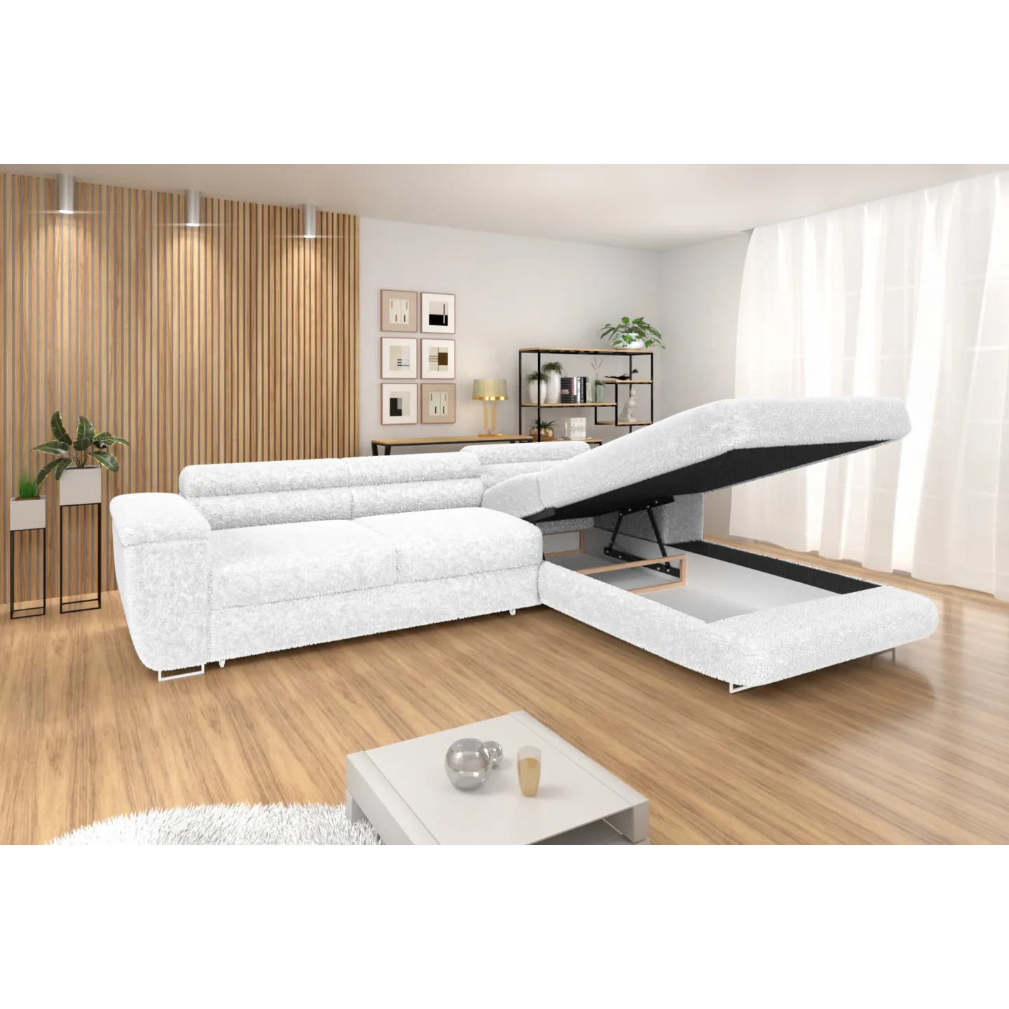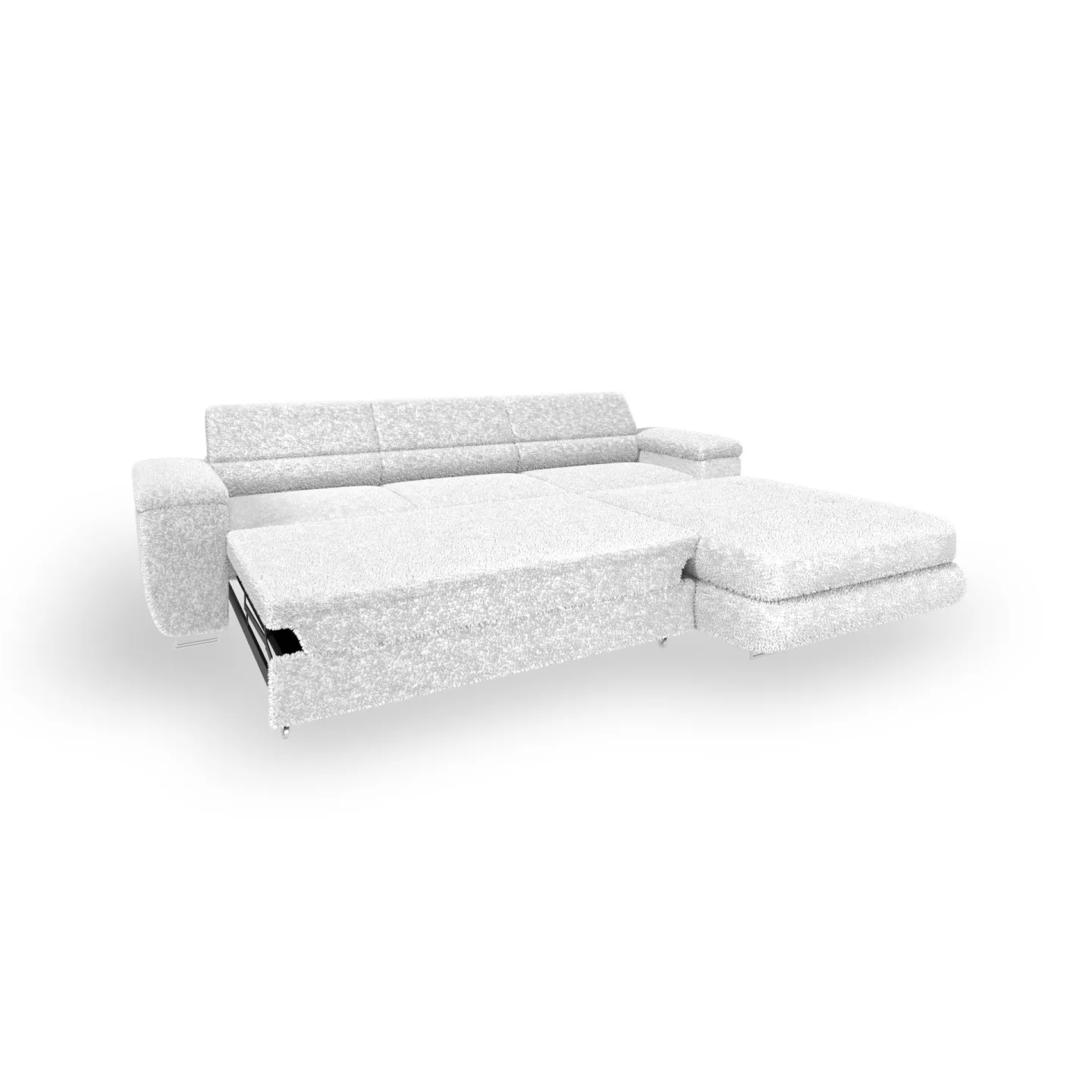 Erleben Sie höchsten Komfort und modernes Design mit dem Ecksofa VENUS BONJOUR. Dieses stilvolle Sofa mit hochwertigem Bouclé-Stoff in Beige vereint Funktionalität und Ästhetik. Dank der Schlaffunktion, des integrierten Bettkastens und der verstellbaren Kopfstützen bietet es maximalen Komfort für entspannte Abende und spontane Übernachtungsgäste.