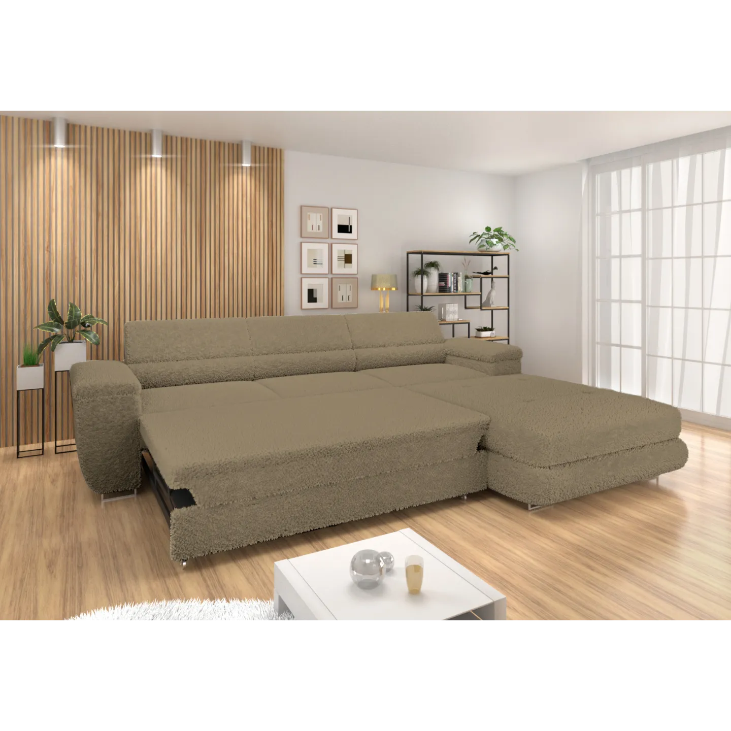 Ecksofa VENUS BONJOUR – Modernes Bouclé-Design mit Schlaffunktion & Bettkasten