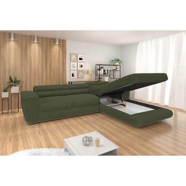 Erleben Sie höchsten Komfort und modernes Design mit dem Ecksofa VENUS BONJOUR. Dieses stilvolle Sofa mit hochwertigem Bouclé-Stoff in Beige vereint Funktionalität und Ästhetik. Dank der Schlaffunktion, des integrierten Bettkastens und der verstellbaren Kopfstützen bietet es maximalen Komfort für entspannte Abende und spontane Übernachtungsgäste.
