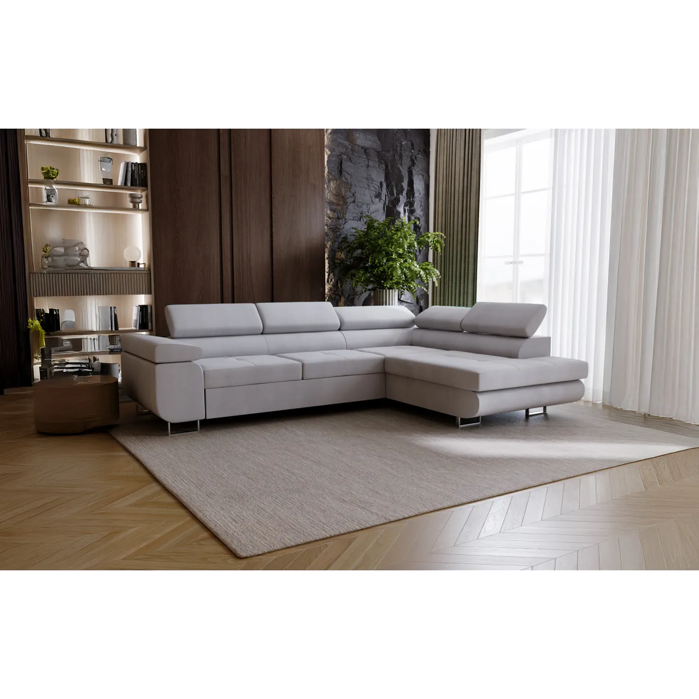 Gönnen Sie sich pure Entspannung mit unserem eleganten Ecksofa in L-Form, das nicht nur optisch überzeugt, sondern auch funktional Maßstäbe setzt. Dieses Modell vereint stilvolles Design, durchdachte Multifunktionalität und höchsten Komfort – perfekt für jedes moderne Wohnzimmer.