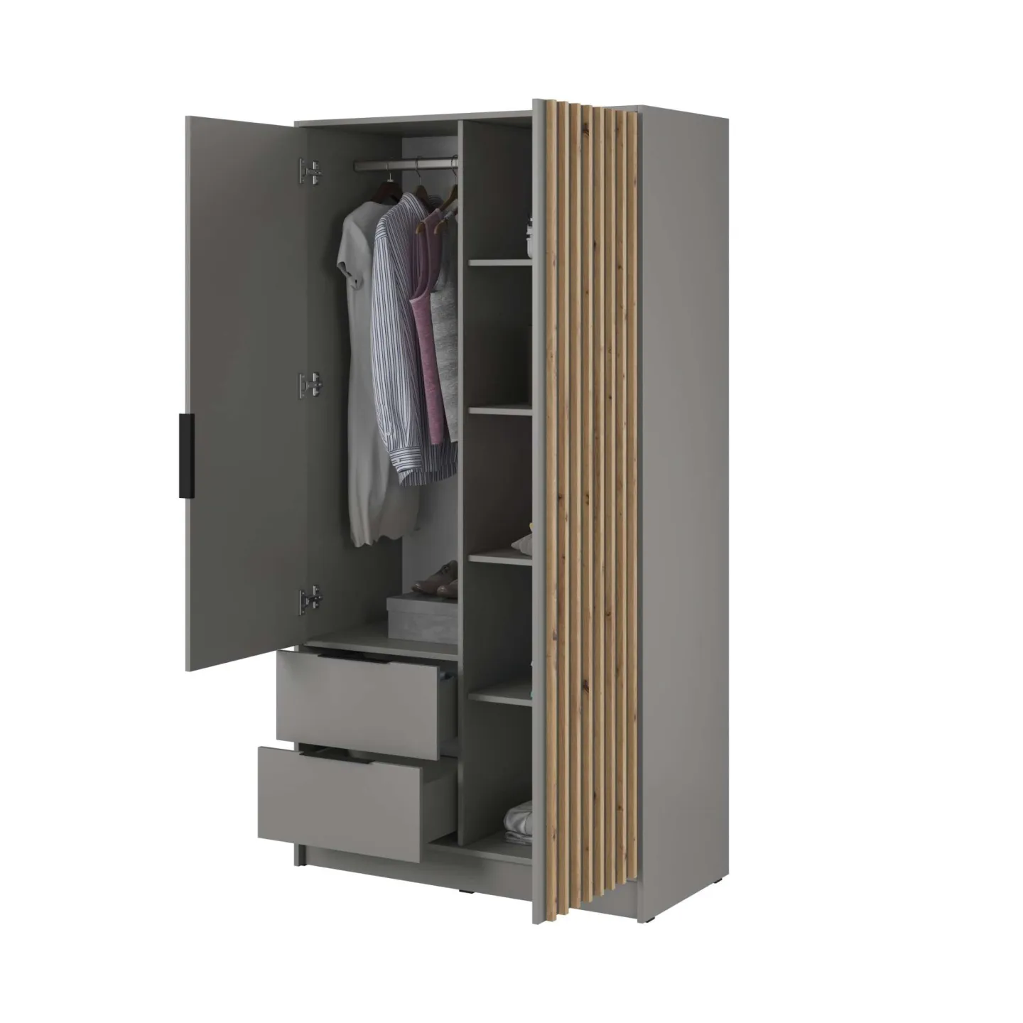 Der ARTISAN 2D Kleiderschrank kombiniert stilvolles Design mit hoher Funktionalität. Seine hochwertige Verarbeitung und durchdachte Innenraumgestaltung bieten eine perfekte Lösung für eine aufgeräumte und elegante Garderobe.