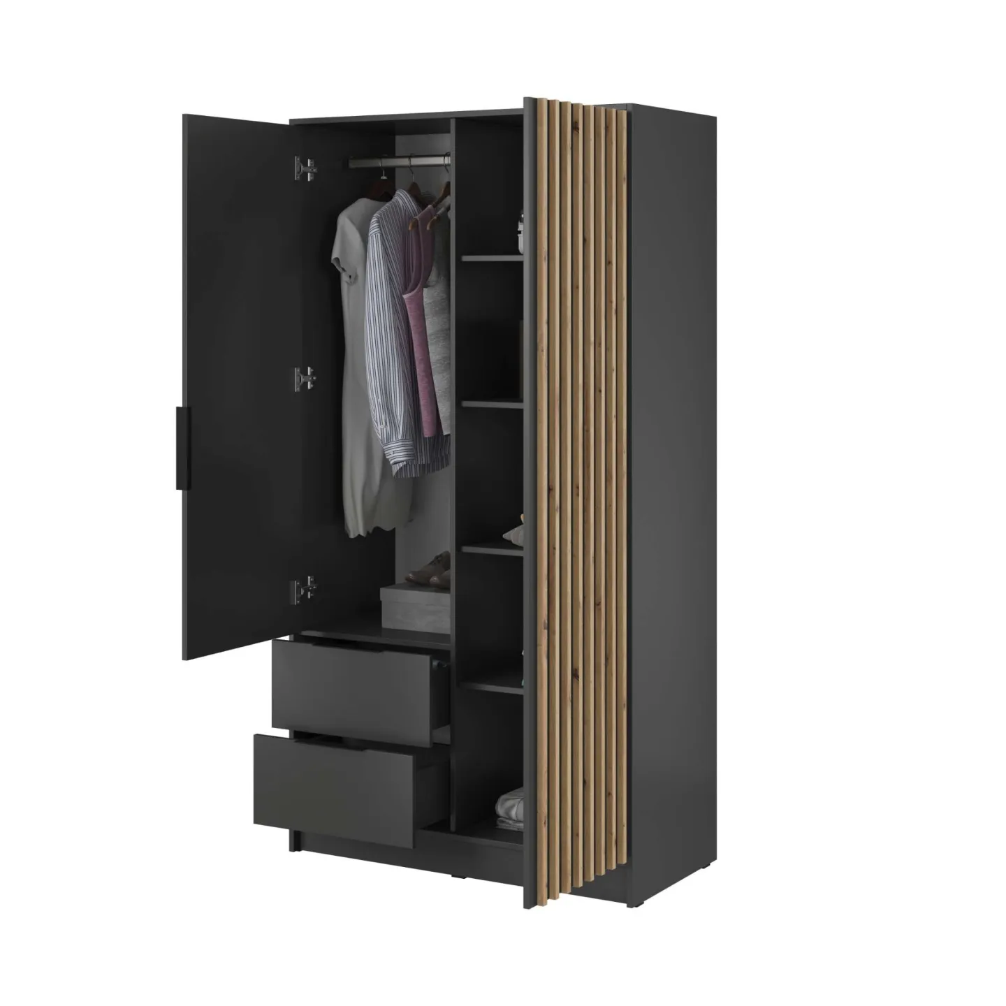 Der ARTISAN 2D Kleiderschrank kombiniert stilvolles Design mit hoher Funktionalität. Seine hochwertige Verarbeitung und durchdachte Innenraumgestaltung bieten eine perfekte Lösung für eine aufgeräumte und elegante Garderobe.