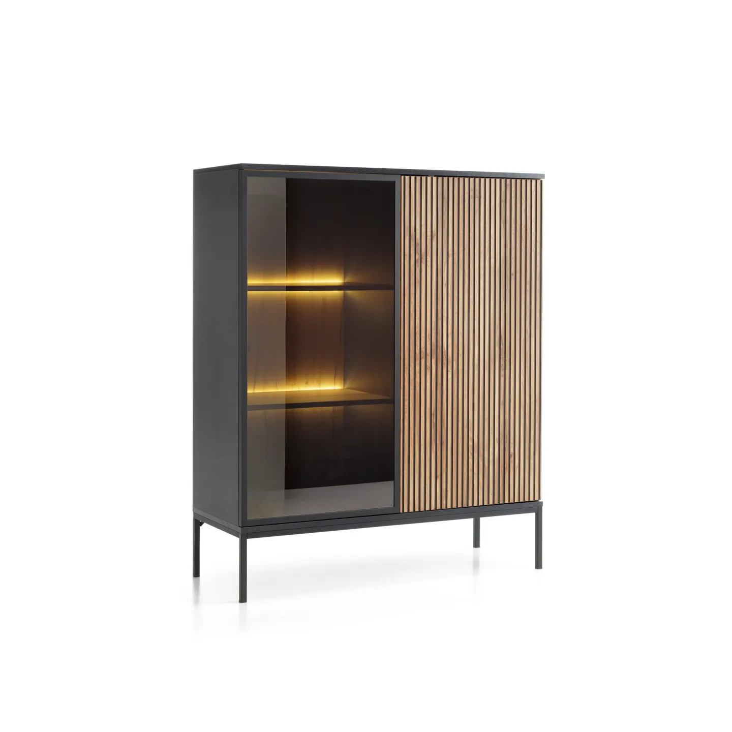 Das Callagher Highboard ST104 besticht durch seine klare Linienführung und die harmonische Kombination von Schwarz und Wotan Eiche. Dieses Möbelstück bietet nicht nur großzügigen Stauraum, sondern setzt auch stilvolle Akzente in Ihrem Zuhause.