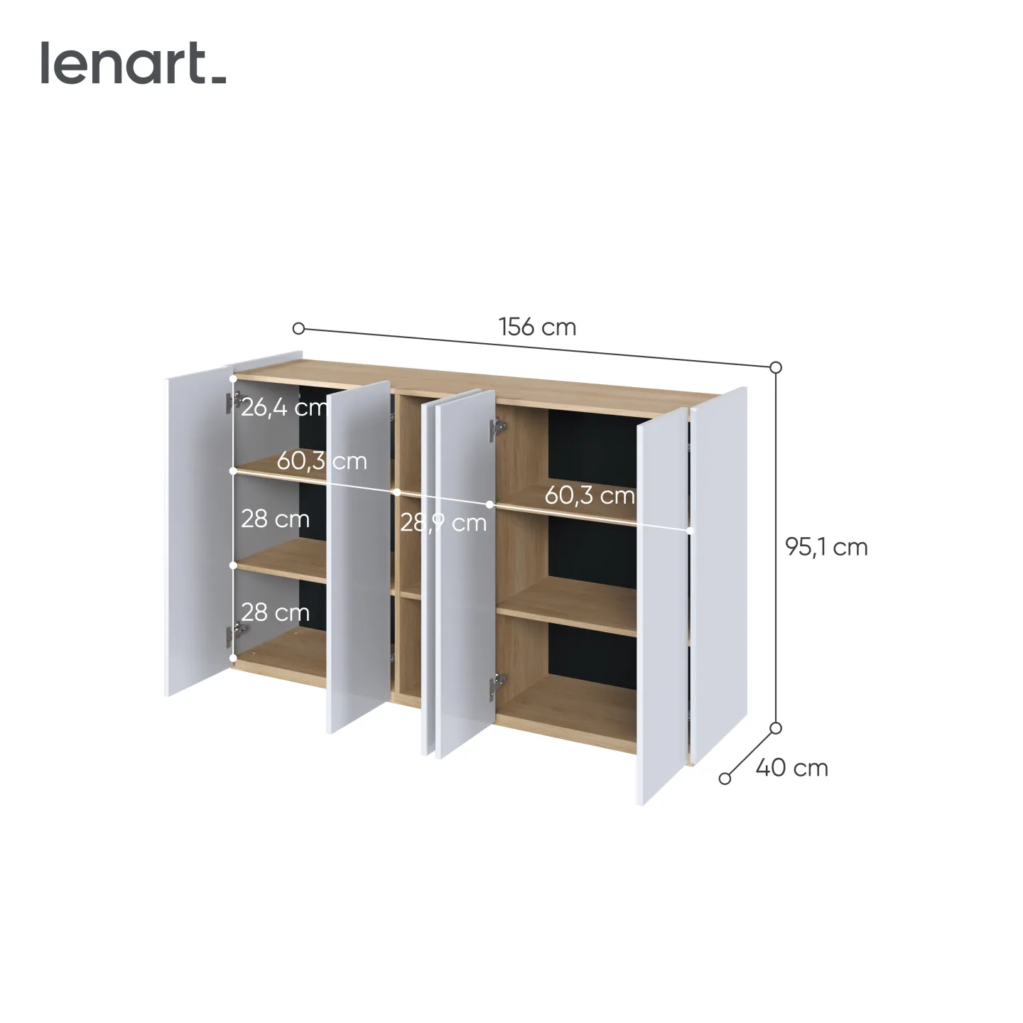 Die Kommode EA-01 ist eine elegante und moderne Lösung für Ihr Zuhause. Mit ihrem stilvollen Design und praktischen Funktionen passt sie perfekt in Wohnzimmer, Schlafzimmer oder Flur. Die LED-Beleuchtung schafft eine angenehme Atmosphäre, während die Hochglanz-Oberfläche den Raum optisch vergrößert. Dank der 5 Türen und 9 Regalfächer bietet die Kommode ausreichend Stauraum.