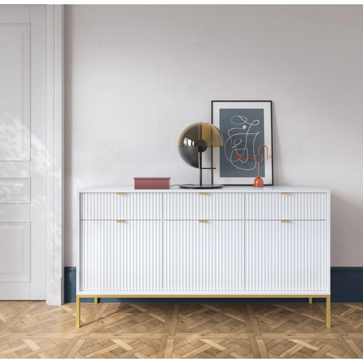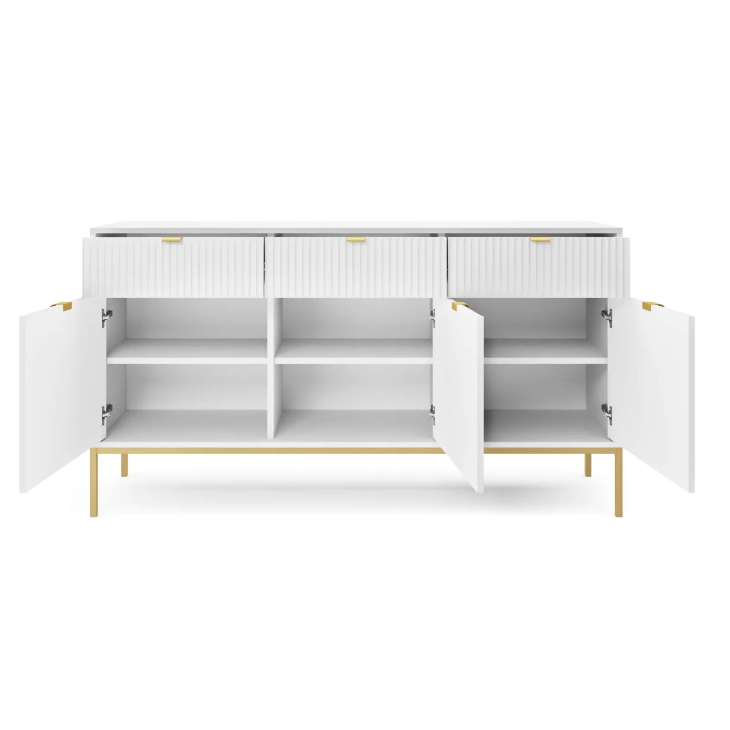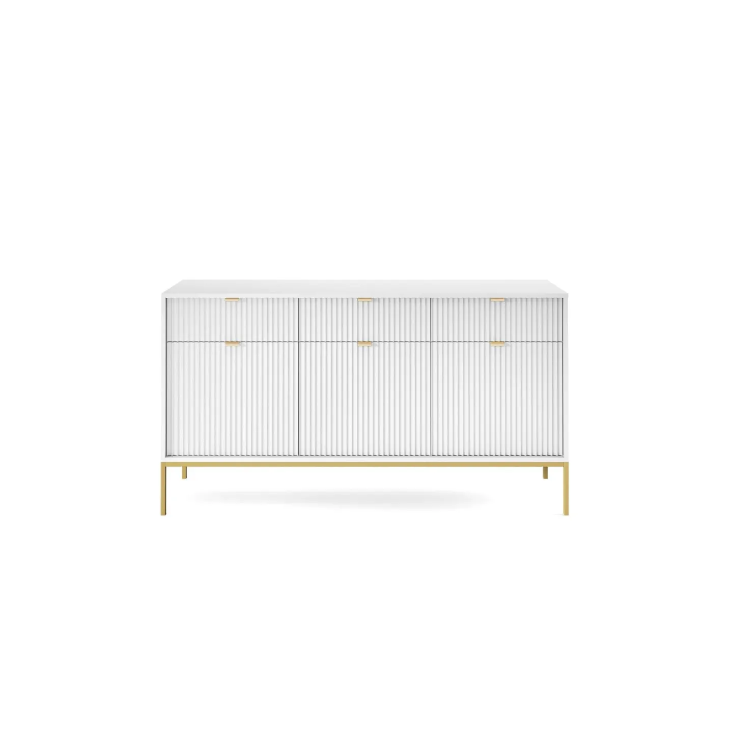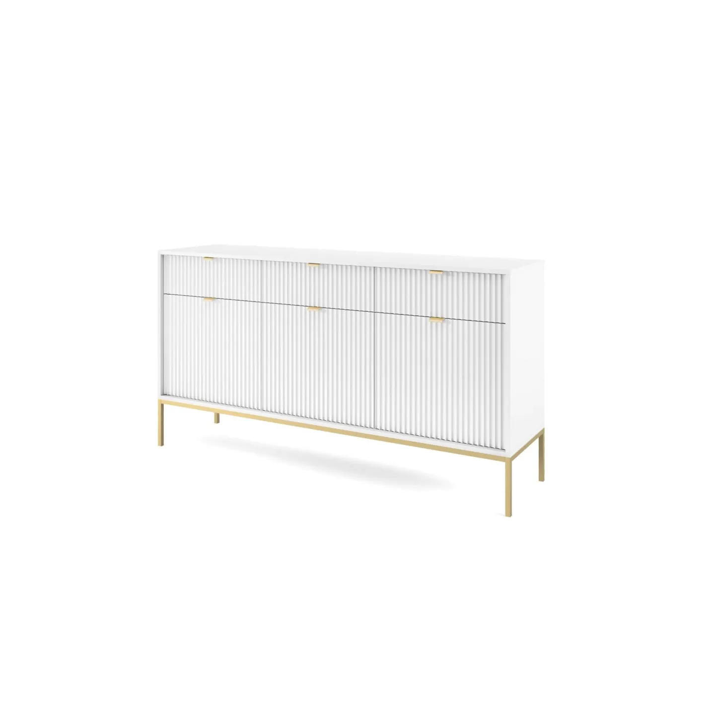 Das Visanna Sideboard kombiniert modernes Design mit hoher Funktionalität. Die dekorativen geriffelten Fronten und eleganten goldenen Griffe verleihen Ihrem Wohnraum eine stilvolle Note.