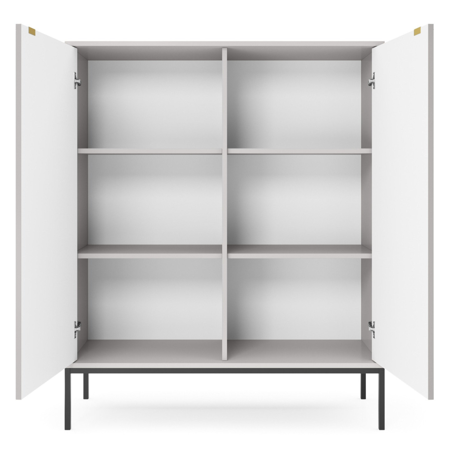 Das Sideboard Visanna bietet mit zwei Türen und mehreren Einlegeböden großzügigen Stauraum. Die große Ablagefläche eignet sich ideal zur Präsentation von Deko-Elementen, Lampen oder Pflanzen – ein Highlight für jede moderne Einrichtung.