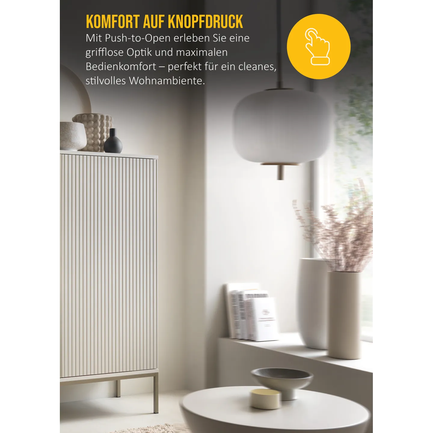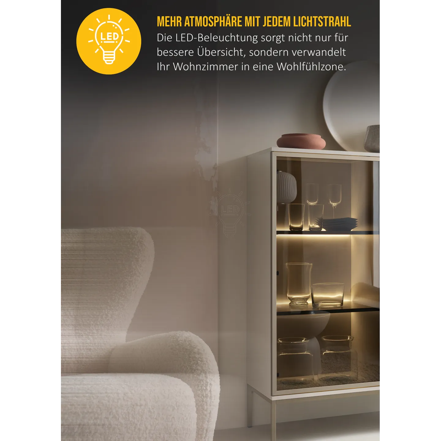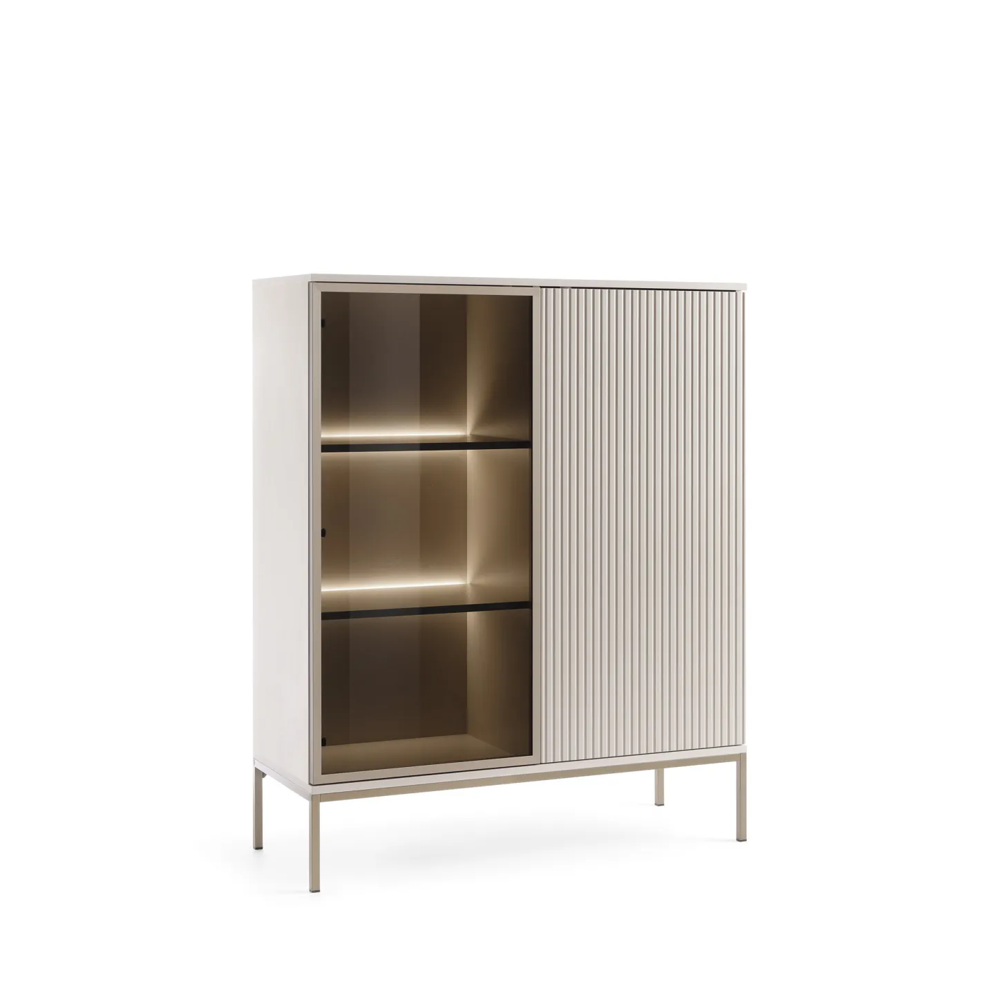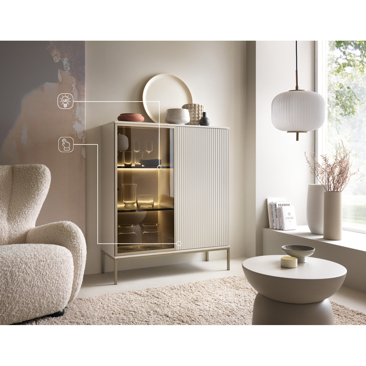 Das Kaschmir Highboard ST104 besticht durch seine klare Linienführung und die harmonische Kombination von Gold und Beige / Kaschmir. Dieses Möbelstück bietet nicht nur großzügigen Stauraum, sondern setzt auch stilvolle Akzente in Ihrem Zuhause.