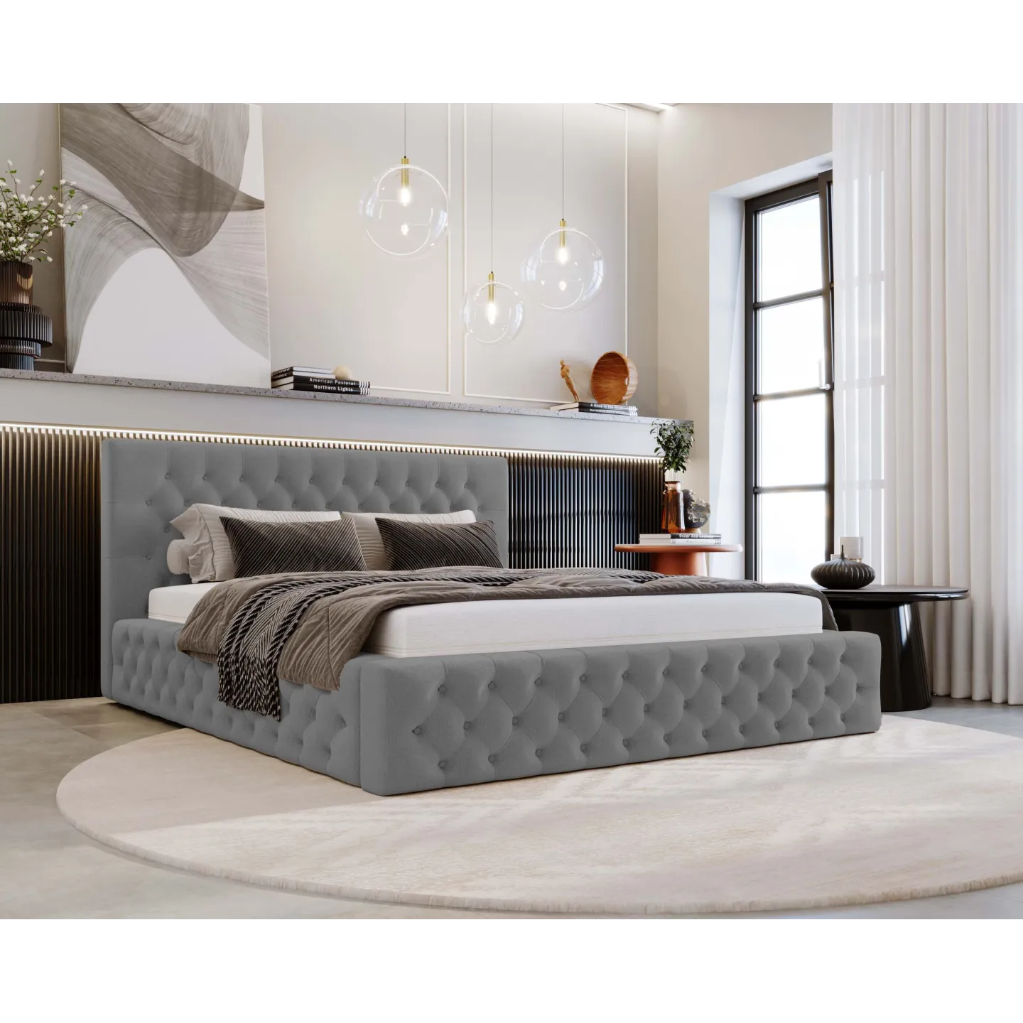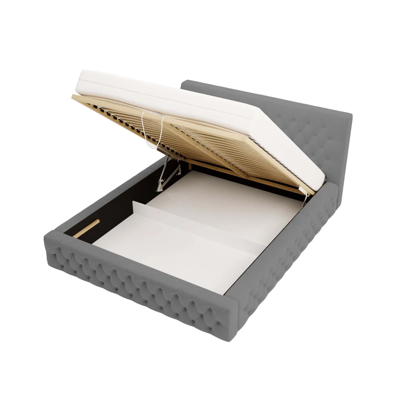 Das Chester Polsterbett vereint zeitlose Eleganz mit modernen Funktionen. Mit seinem edlen Chesterfield-Design, hochwertigen Materialien und einem praktischen Bettkasten ist es die perfekte Wahl für Ihr Schlafzimmer.