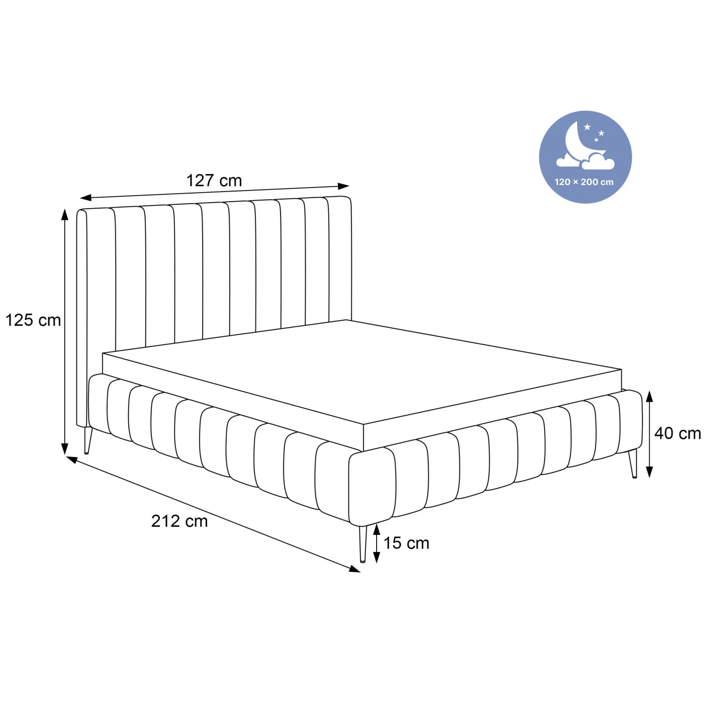 Hoher, gepolsterter Kopfteil mit modernen, vertikalen Steppungen. Bietet Komfort beim Anlehnen und verleiht dem Bett eine ruhige, luxuriöse Optik.