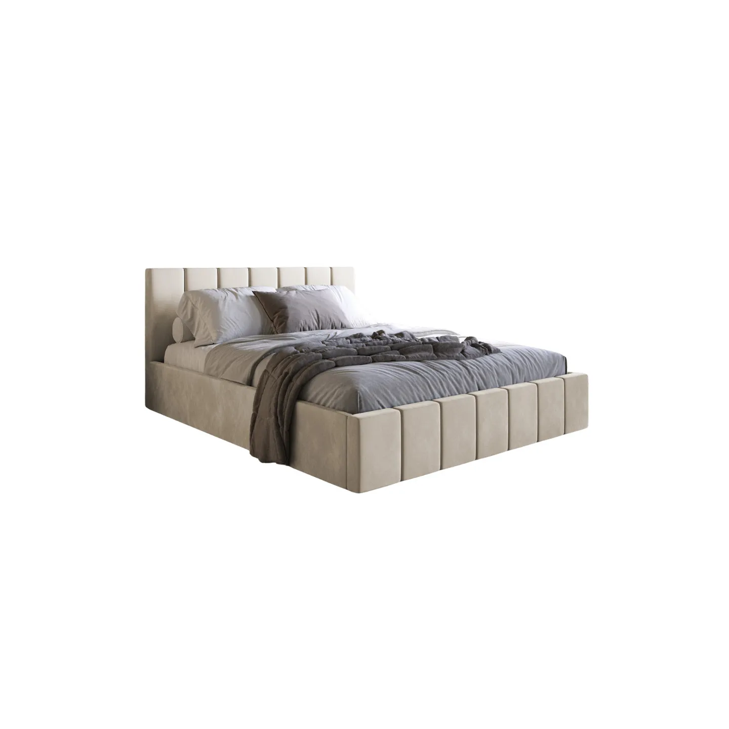 Polsterbett PAROS I Samt ist ein modernes Boxspringbett mit klarer Formsprache und luxuriösem Hotel-Charakter. Die markante vertikale Blocksteppung auf Kopfteil und Rahmen macht das Bett zum stilvollen Mittelpunkt Ihres Schlafzimmers. Mehrere verfügbare Liegeflächen von 120 × 200 cm bis 200 × 200 cm ermöglichen eine perfekte Anpassung an kleine wie großzügige Räume.