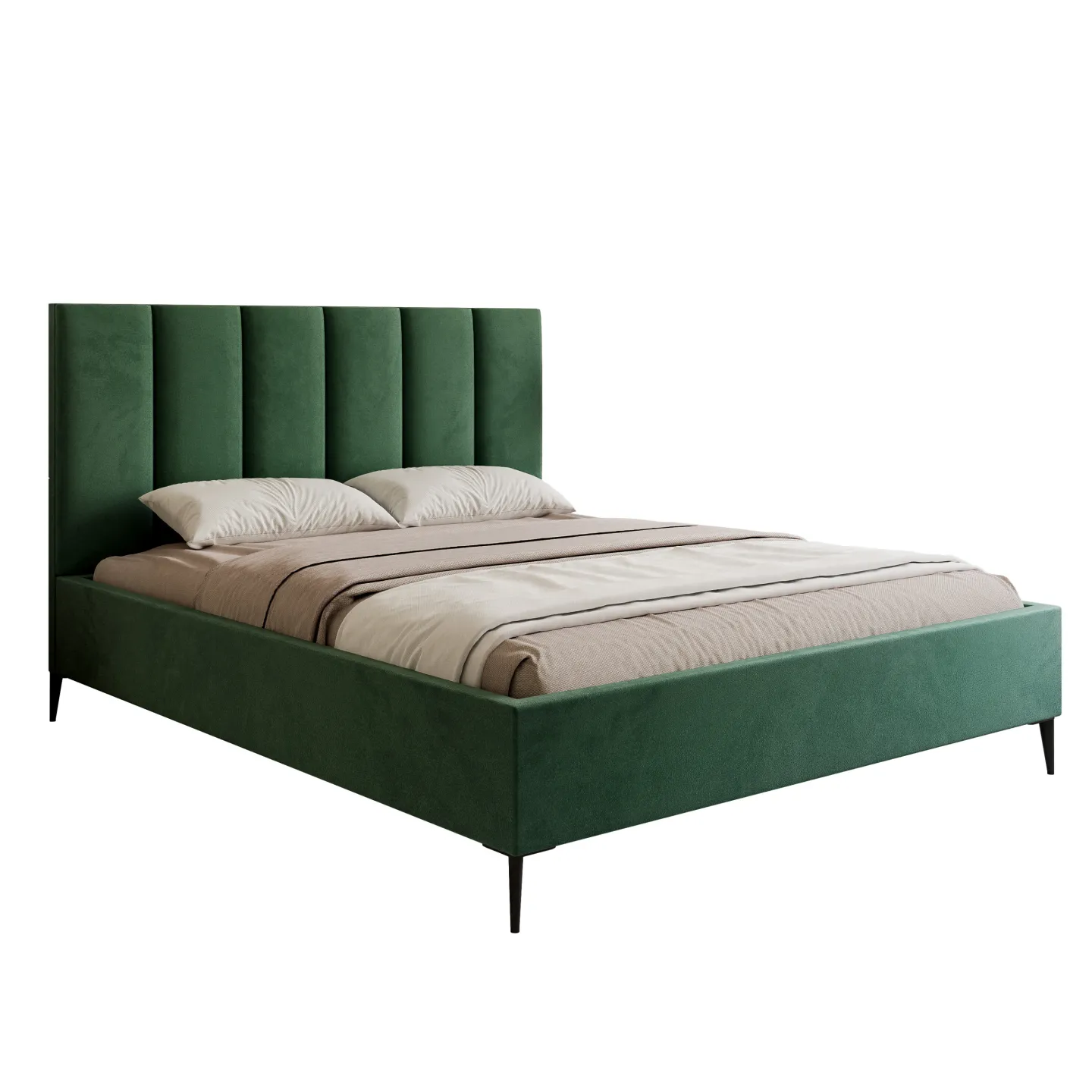 • Kopfteil: gepolstert mit breiten, vertikal verlaufenden Paneelen – komfortable Rückenstütze.