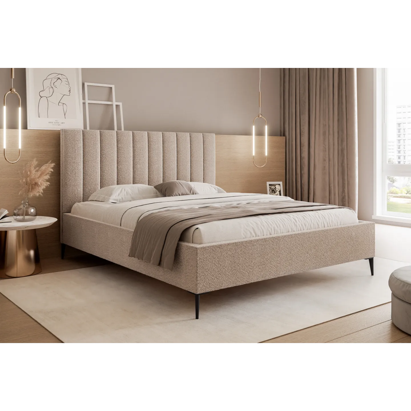 Der hohe, weich gepolsterte Kopfteil lädt zum Anlehnen ein und bietet Komfort beim Lesen, Fernsehen oder Entspannen im Bett. Die markante Rillen-Optik verwandelt das Bett in ein Design-Statement und macht es zum Mittelpunkt des Raumes, ohne ihn optisch zu überladen.