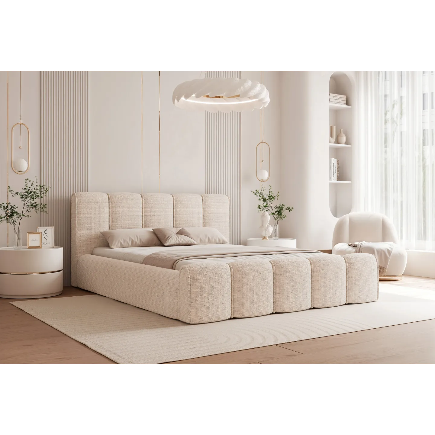 Einführung Das Polsterbett LEWIS ist ein modernes Designer Doppelbett mit hohem, vertikal gestepptem Kopfteil und großem Bettkasten über die gesamte Liegefläche. Erhältlich in den beliebten Größen 120x200, 140x200, 160x200, 180x200 und 200x200 cm, verbindet dieses Polsterbett mit Bettkasten eleganten Soft‑Minimalismus mit praktischem Stauraum. Die weiche, voluminöse Form, die exklusive Strukturstoff-Polsterung und die ruhige Cloud-Optik machen LEWIS zur idealen Wahl für alle, die ein hochwertiges polsterbett mit stauraum in Hotel-Suite-Optik suchen.