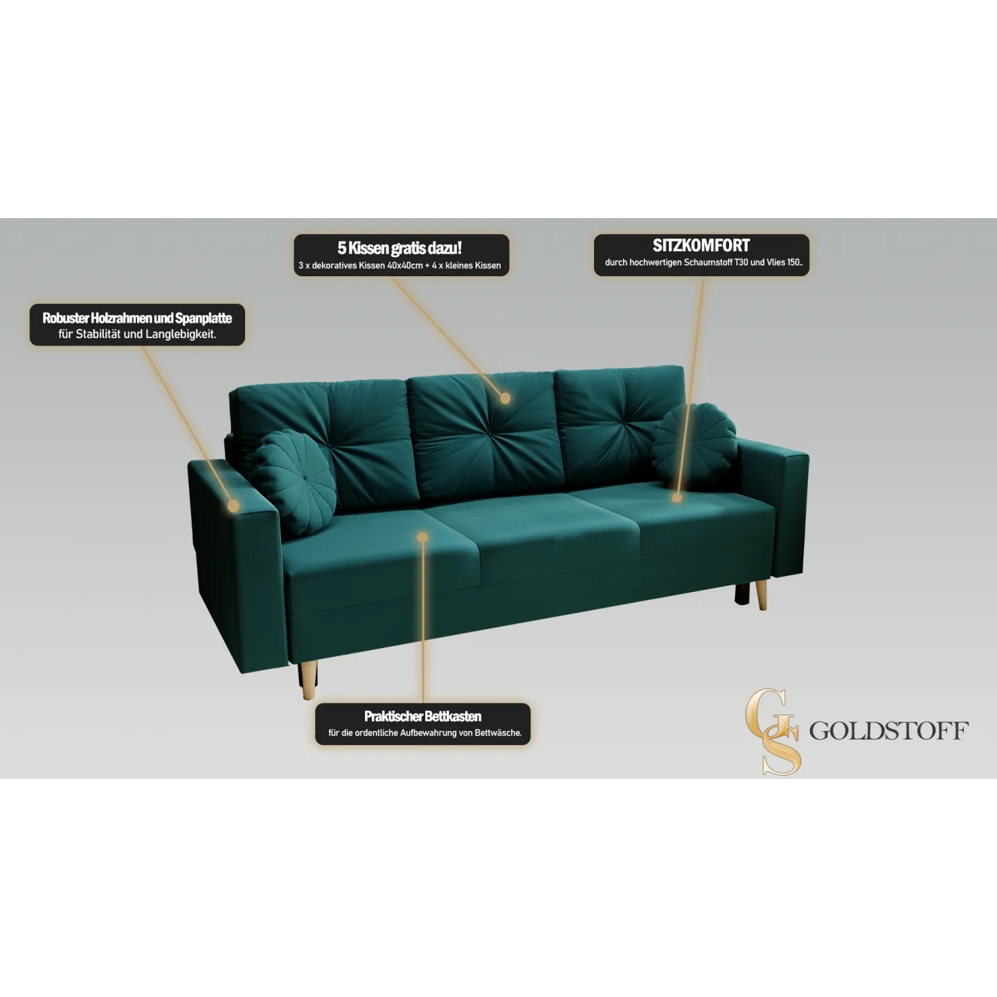 Erleben Sie den Komfort und die Eleganz des BONITO Schlafsofas. Jetzt bestellen und Ihrem Wohnraum einen Hauch von Luxus verleihen!